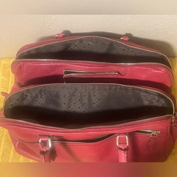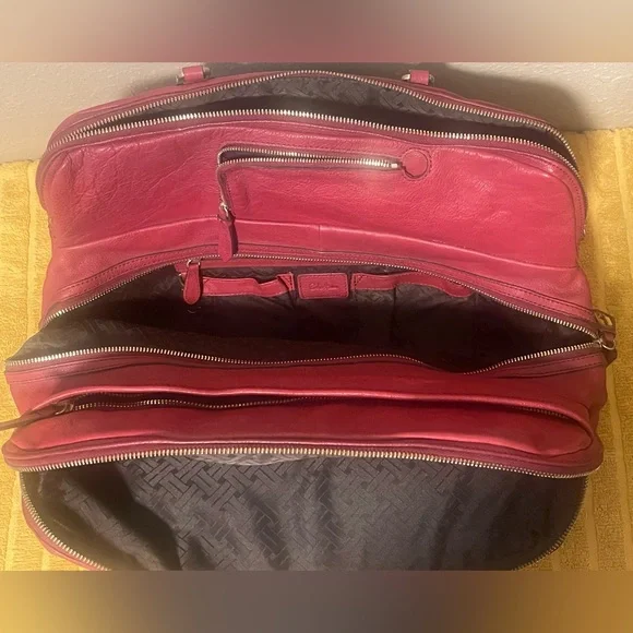 Red Cole Haan Tote/Weekender/Travel/Laptop BagLeather Cole Haan claret red bagThis bag has a place for everything for your next weekend or business trip.Color: Red with gold hardware.Condition: GREAT CONDITION :: this bag has been well taken care of :: I never really used this bag, which is why it’s in excellent condition. I bought it because I thought it was beautiful and different and was obsessed with Cole Haan :)Bag has many zippered compartments to place belongings and phone compartmentPerfect as a work bag to keep laptop protectedIs also perfect for a personal item on a plane or a weekend bagSerious inquiries.Reasonable offers only. I will not send pics outside of theApp.