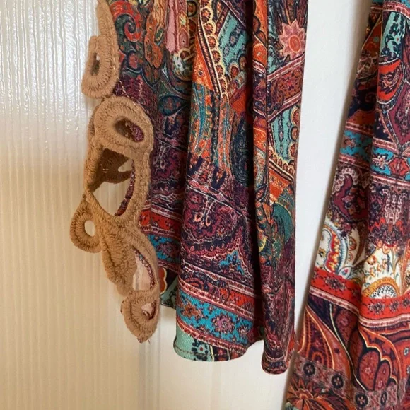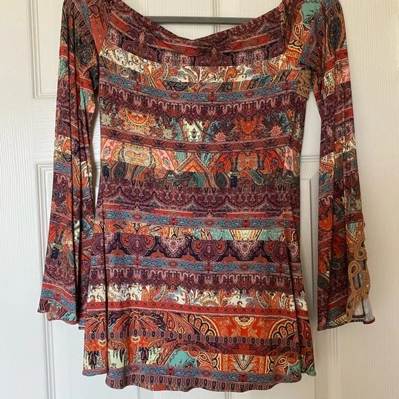 Elevate your style with this vibrant blouse from Sky, featuring a stunning blend of orange and red hues. The 3/4 sleeves and pleated design add a touch of elegance, making it perfect for both casual and artistic occasions. Crafted with a light and airy fabric, this blouse offers a comfortable and flattering fit. New with tags never worn.