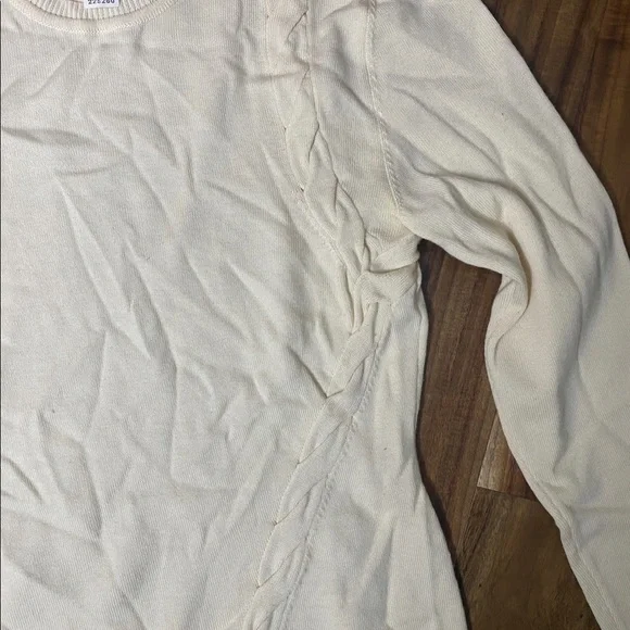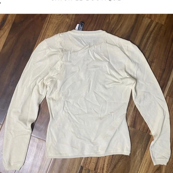 **Gianni Versace Cream Sweater**Great for the winter! A classic sweater with a twisted rope design going down the left side from the shoulder! Wool sweater blouse with long sleeves. Classy, comfy and cute! This piece will be a great addition to your closet!Original Retail Price: $1150Size: MediumMaterial: 100% WoolMeasurements: Length 20.5", Armpit to armpit 16" (flat), Sleeve 22"