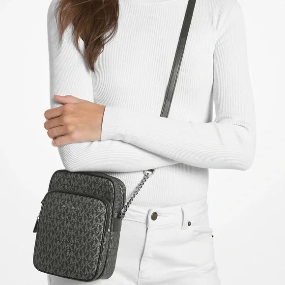Michael Kors Medium Metallic Signature Logo Crossbody BagBRAND NEW! New With Tag (NWT)! Never been used.Authentic Michael Kors CrossbodyA great on-the-go companion with its compact profile, which makes it effortlessly portable.Logo-Print CanvasSilver-Tone HardwareAbout 6” (W) x 8” (H) x 2.75” (D)See the last slide for additional product information.Any questions? Please ask.