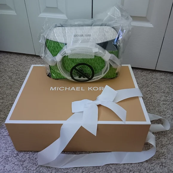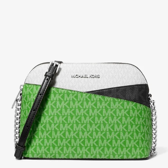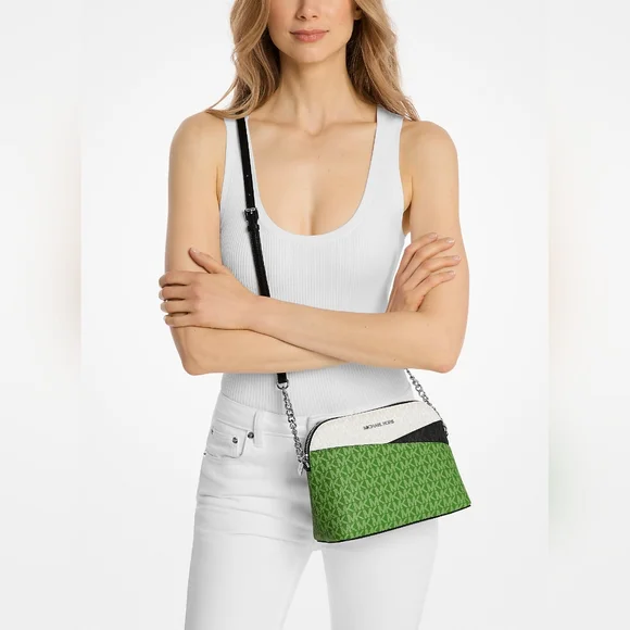 NEW IN BOX, never taken out of original packaging! Jet Set Travel Color-Block Signature Logo Crossbody Bag. Stunning black, white and green signature monogram canvas. Silver hardware. Adjustable crossbody strap. Has pocket on front exterior and a pocket on the interior. New in box! Never been taken out of it's packaging. Comes with all original packaging, ribbon and magnetic box. Perfect for gifting! Purchased for $398.• Crossbody bag• Logo-print canvas• 89.4% coated canvas/9.6% polyester/1% polyurethane• Silver-tone hardware• 8.5”W X 6.75”H X 3.5”D• Exterior details: front slip pocket• Interior details: front slip pocket• Lining: 100% polyester• Zip fastening• Dust bag not included• Imported• Style # 35S5STVC6B