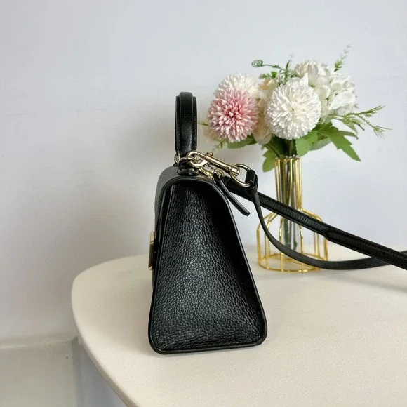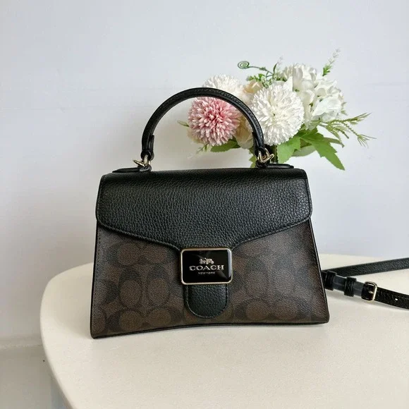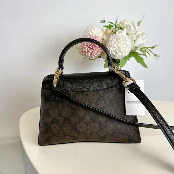 Coach C7226 Pepper Satchel In Signature Canvas IN BROWN BLACKSignature coated canvas and refined pebble leatherInside multifunction pocketSnap closure, fabric liningTop handle with 2 3/4" dropOutside open pocketDetachable strap with 22 1/2" drop for shoulder or crossbody wear8 3/4" (L) x 6" (H) x 4" (W)Style No. C7226UPC: 195031394591SKU;CO3497