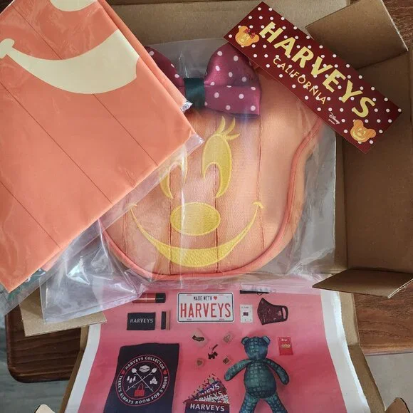 Brand new, limited edition (and sold out within minutes) Harveys x Disney Convertible Halloween Pumpkin Minnie Crossbody AND matching Dust Bag from their 2020 Fall/Halloween collection! You will also receive the bulletin and sticker that came with them as well. Items will be shipped in the original Harveys box I received them in.NOTE: the bag is out of its original packaging because I ALMOST got the urge to use it but mama has bills to pay so decided against that idea. Hence, it will be shipped in the clear plastic bag you see in pic 14. Dust bag is still in its original packing, however I just realized that there is a manufacturing flaw on one side of the dust bag on Micky's nose (see pics 11-13 for details and as always feel free to as any questions.) Bag specs:9.5" (L) X 8.5" (H) X 2" (W)Detachable strap extends 30" to 60"Made in USAAnimal Friendly (Vegan)Dust Bag specs:Screen printed canvas with satin ribbon drawstring19" (L) x 14.5" (H)Fits most Harveys bags**ALL ITEMS ARE RECORDED DURING THE PACKAGING PROCESS AS WELL AS PACKAGE DROP OFF AT THE POST OFFICE IN ORDER TO PROTECT THE BUYER AS WELL AS THE SELLER**Check out my other Harveys Seatbelt listings~!