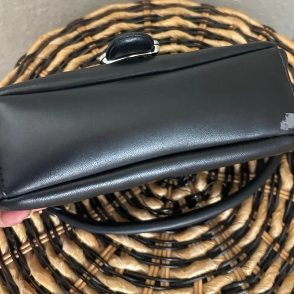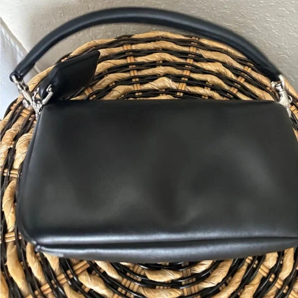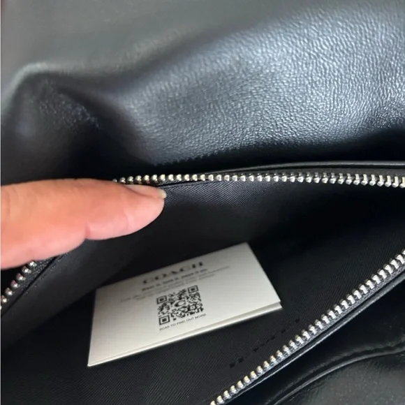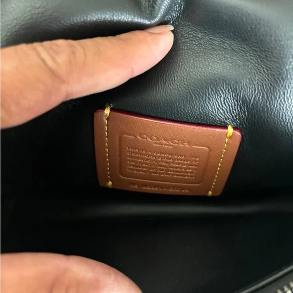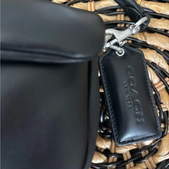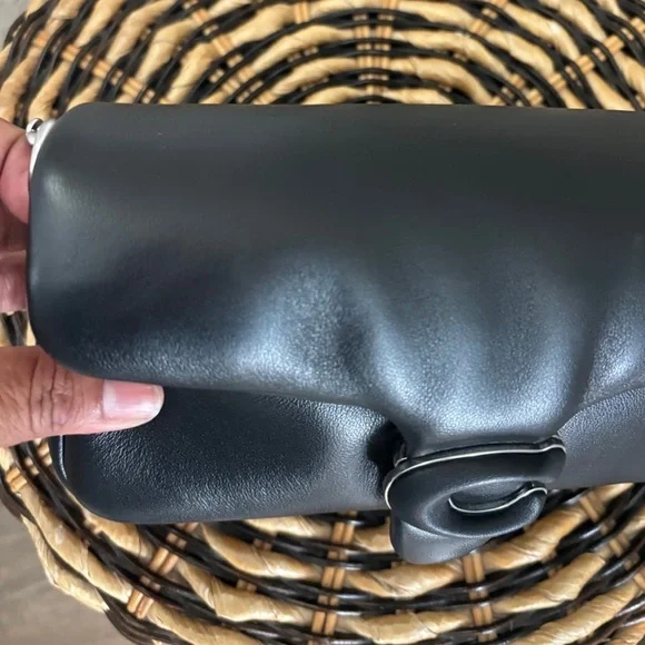 Elegant and versatile, this Coach black leather shoulder bag is perfect for any occasion. Its sleek design and high-quality material make it a must-have accessory.Preowned has a flaw on the bottom of bag little peeling see pictures, like new beautiful shoulder bag. No strap whatsoever pictured is what's included and the flaw as well.COACHSee pictures like new overall preowned good condition Pillow Tabby Leather Shoulder Bag• Flap with snap closure• Interior slip pocket & zip pocket• Signature hangtag• Lined• Nappa leather