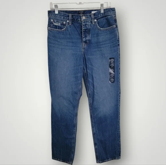 J. Crew Factory Slim boyfriend Jean In all-day stretch Sz 27 Blue. Great condition. No rips or stains. New With Tags.83% cotton/16% lyocell/1% elastane.All-day stretch fabric: low stretch, with an easy feel and a little bit of give.Zip fly.Traditional 5-pocket styling.Machine wash.Imported.inseam 28inRise 10.5inWaist flatlay 15in#154
