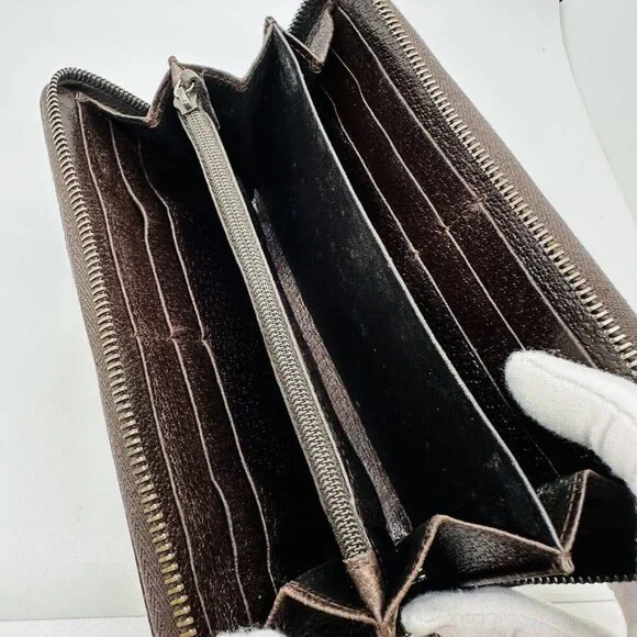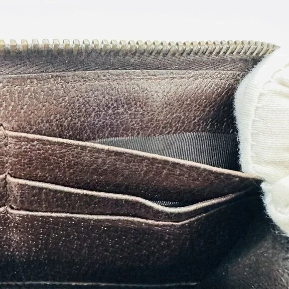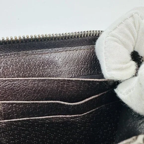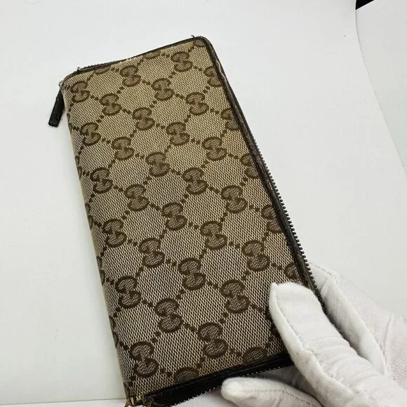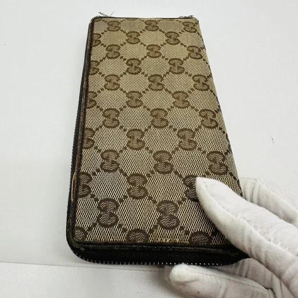 This beautiful Gucci Zippy Wallet is perfect for anyone looking to add a touch of luxury to their wardrobe. Crafted in Italy with high-quality materials like brown canvas and leather, this wallet has a spacious interior featuring credit card slots and a wristlet for added convenience. Its dimensions of 7.48 inches in length and 3.54 inches in width make it a perfect size for everyday use. Vintage Gucci in preloved condition, one of the corners does need repair but it will then be 3X more worth than what you paid for it.All used bags/shoes may have the following✔️Discoloration✔️Signs of use✔️Scratches scuffing✔️rubs✔️Pls check the pictures closely as they are part of the description.✔️All sales are final. No exchange. No refund✔️All used footwear is thoroughly cleaned and sanitized