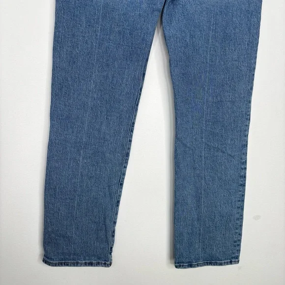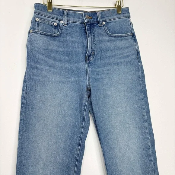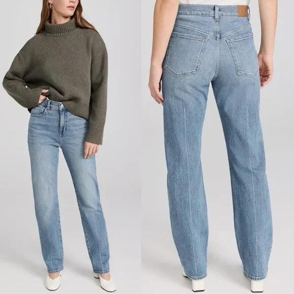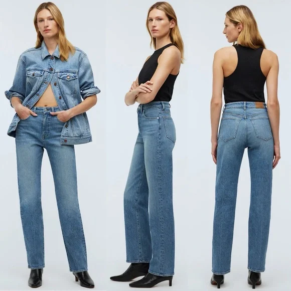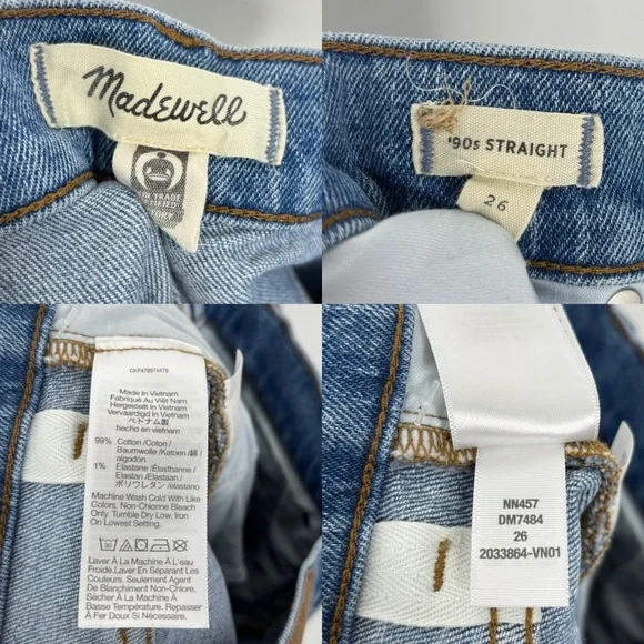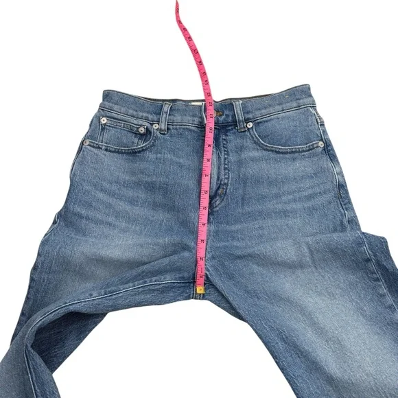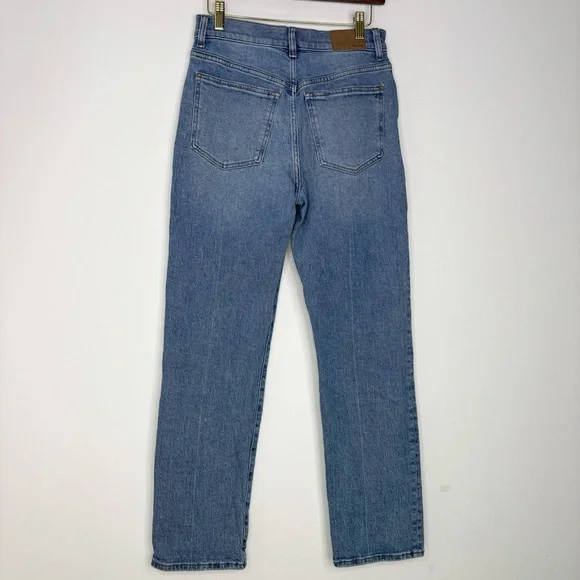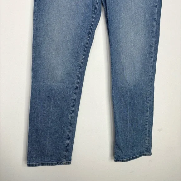 Madewell The '90s Straight Jean in Rondell Wash Size 26Excellent condition, size 26, see measurement photos The cut: our cheekiest style yet, these '90s-inspired jeansfit snugly through the hips and thighs with the holds-you-in sorcery of our Magic Pockets™ in front and a higher back rise for a curve-enhancing lift (AKA they'll make your butt look incredible). This pair has old-school deep creases down the straight legs.The fabric: vintage-y structured denim with a touch of stretch for a broken-in feel.Authentic medium indigo wash with distressing.99% cotton/1% elastane.Do Well: By buying cotton products from Madewell, you're supporting our investment in Better Cotton's mission to help cotton communities survive and thrive while protecting and restoring the environment. This product is sourced through asystem of mass balance and therefore may not contain Better Cotton.For each item made at the Fair Trade Certified™ factory, we contribute to a Community Development Fund managed by the workers.Machine wash.Item NN457