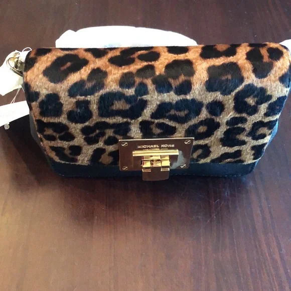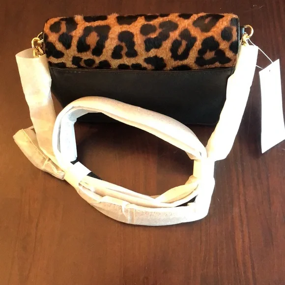 Brand new, absolutely gorgeous calf hair clutch. Never unwrapped, protected chain strap clutch.Can be clutch, shoulder or cross body.Front magnetic snap closure. Measurements:5”H x 6.5”L x 2 “ DSmall snaps on side to open slightly larger Smoke and pet free homeHappy to take the wrapping off the chain linked strap for pictures upon request.