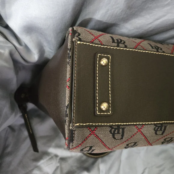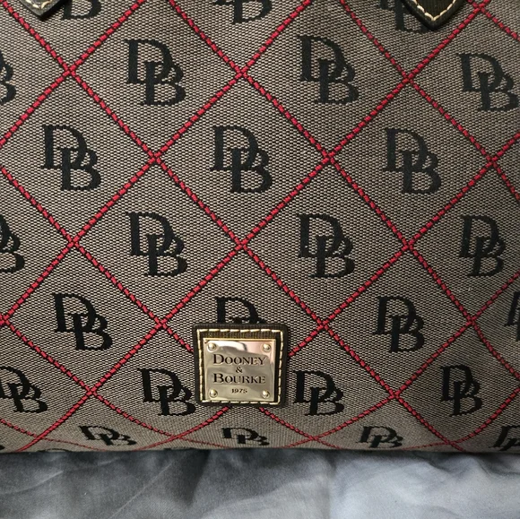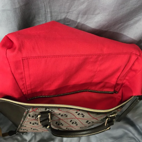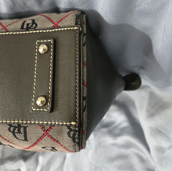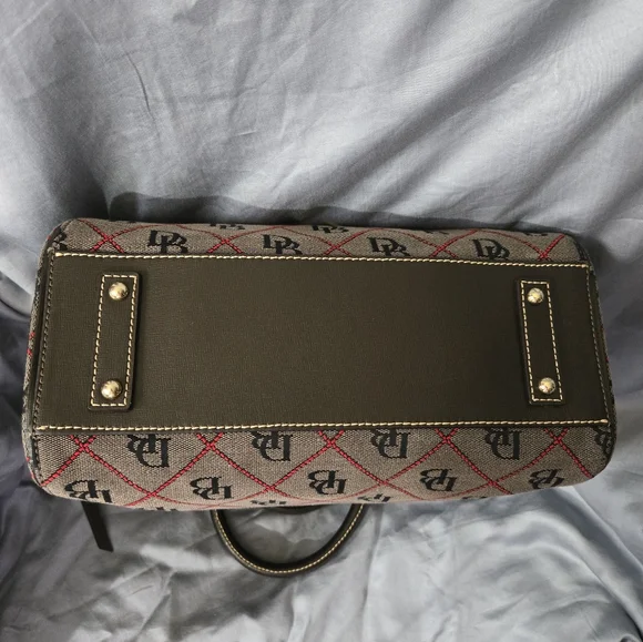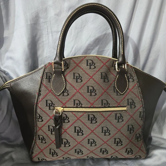 This EUC Dooney&Bourke Sydney Satchel combines a sleek black and gray color palette with a structured, dome-like shape. Its wide base and durable heavy canvas and leather construction make it a practical yet stylish choice for any occasion. The satchel's elegant design is perfect for adding a touch of class to your ensemble. Clean inside and out. Smoke free home.