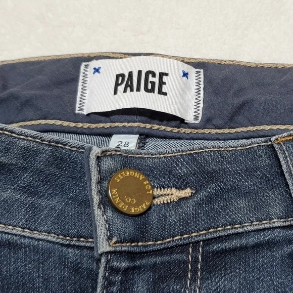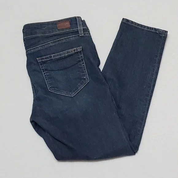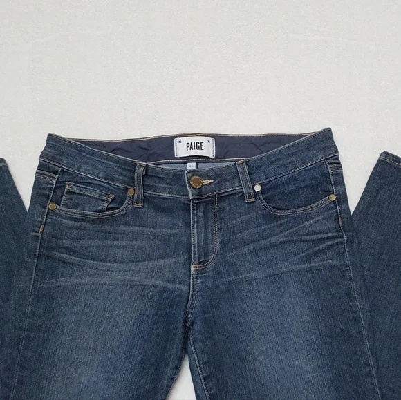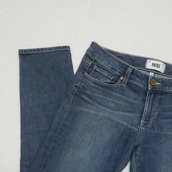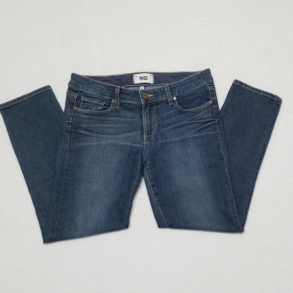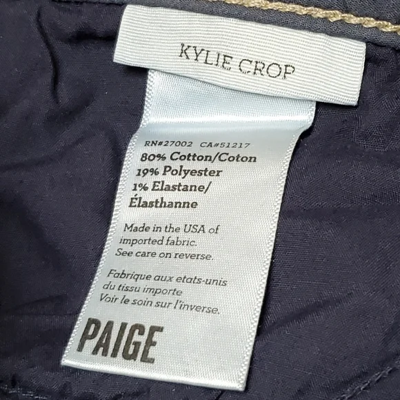 Paige Kylie Crop Andrea Dark Wash Mid Rise Whiskered Stretchy Skinny Jeans.- Kylie Crop Jeans by Paige- Color Name: Andrea- Dark Wash with a Mid Rise, Medium Rise- Cropped Skinny Leg made for Cuffing and Rolling- Whiskered Thighs in a Classic Five Pocket Design- Stretchy in a Cotton, Polyester and Spandex BlendSize 28Approximate Measurements(Flatlay):Waist - 15.5 inchesRise - 8 inchesHips - 18 inchesThigh - 9.5 inchesInseam - 25 inchesLeg Opening - 6 inches