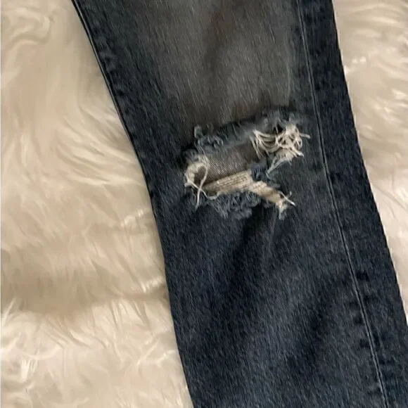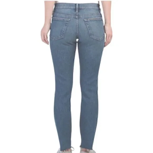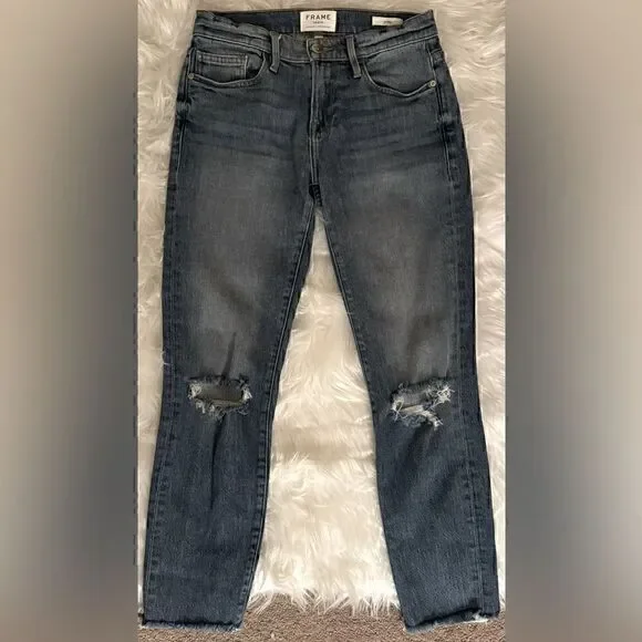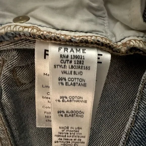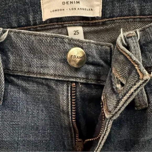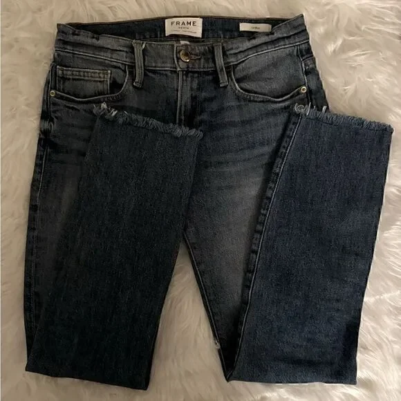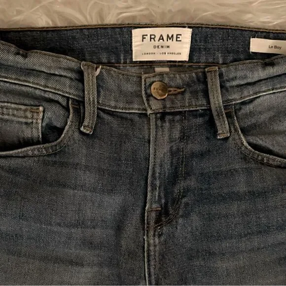These blue Frame Denim Le Boy straight cropped mid-rise jeans have been constructed with cotton, are mid-rise, feature belt loops, five pockets, gold tone hardware, frayed hem and a cropped leg. If you are anything like us, after a few dates, you will soon be mad about Le Boy, because this style is so very seductive - you can bring them anywhere and they fit in. Complete with five functional pockets, belt loops, and a zip fly with button closure, these jeans blend classic denim details with a modern edge. Whether you’re pairing them with sneakers for a casual day or dressing them up with heels for a night out, these boyfriend jeans are a must-have in your wardrobe. Measurements:W: 14”R: 7.5”L: 27”- All measurements are taken flat across one side (unless otherwise noted), please double to get the measurement all the way around.- Measurements are approximate, please review carefully prior to purchase to help ensure proper fit.- Color may vary with device and lighting.- Please review all photos thoroughly.- All orders are shipped same or next business day.- Offers welcome!