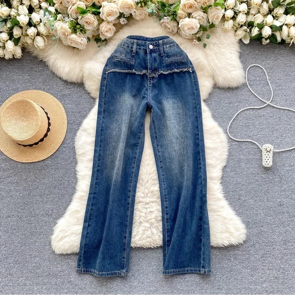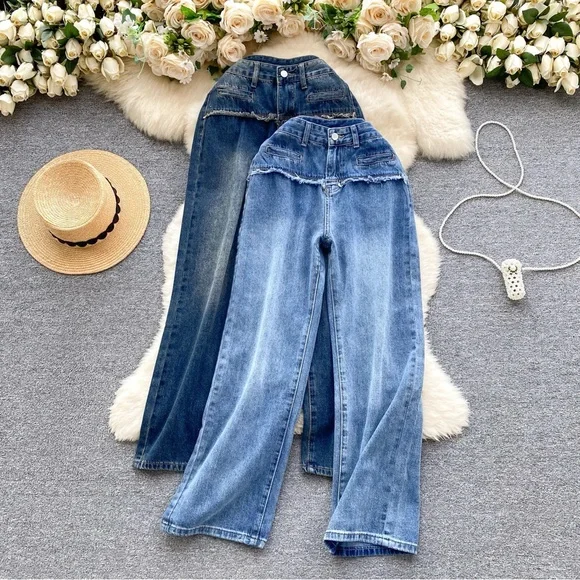 Level up your denim game with the Skyline High Rise Rigid Denim Jeans, crafted from premium non-stretch Mahón fabric for that authentic, structured silhouette. Featuring a unique frayed waistline and a wide-leg cut — these jeans are a fashion-forward essential.🧵 Material: 100% Denim (Rigid Denim, non-stretch)✨ Condition: Brand New🎨 Available Colors: Light Blue & Dark Blue📏 Sizes Available: Small, Medium, Large👖 Style: High waist, wide-leg, vintage structure🌟 Details:•Non-stretch, firm yet breathable•Frayed V-cut waist for a trendy twist•Perfect for casual, streetwear, or minimalist looks•Zip closure with button fastening•Available in two timeless washes📐 Size Measurements (in inches):•Small: Waist 26 in | Hips 38 in | Inseam 28 in | Length 39 in•Medium: Waist 28 in | Hips 40 in | Inseam 28 in | Length 40 in•Large: Waist 30 in | Hips 42 in | Inseam 28 in | Length 41 in💡 For women who love structured denim with a high-waisted, sculpted look — make room in your wardrobe for this must-have pair!