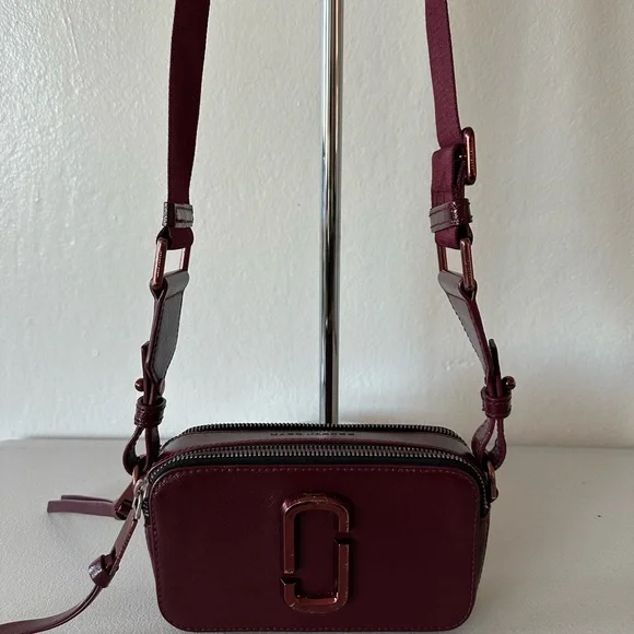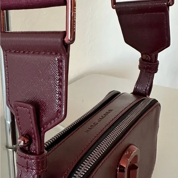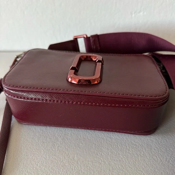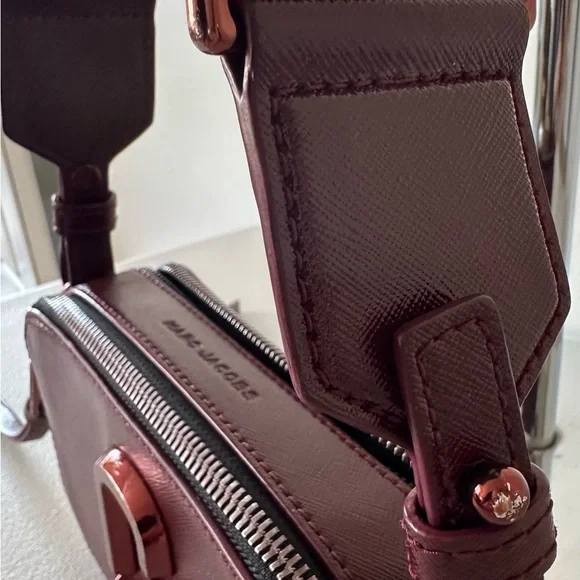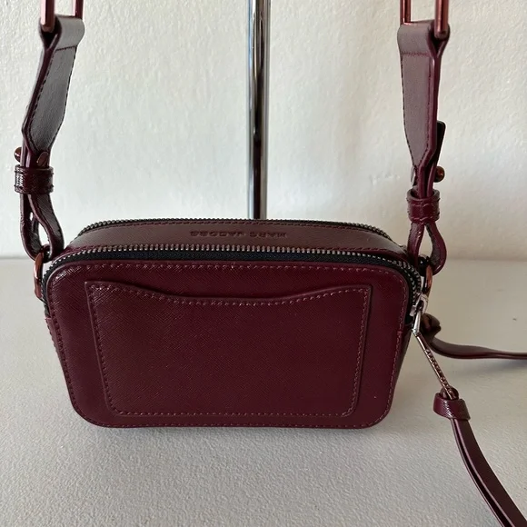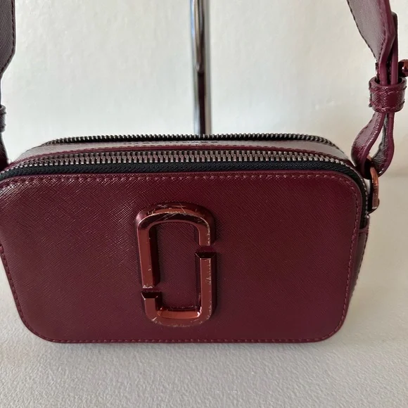 MARC JACOBS Snapshot Monochrome Bag… PRE OWNED LEATHER IN EXCELLENT CONDITION (Hardware has scratches and color is peeling see pictures)… this monochromatic version. Made from Saffiano leather, the structured style has two zip sections and has been adorned with tonal double-J hardware. The webbing strap features signature logo lettering, lending a refined finish to this chic design. Height 4.3"in x Width 7.1" in x2.4" in Strap Drop Length 68cm/26.8" Saffiano leather, Zip closureRemovable and adjustable strap, Monochromatic double-J hardware, Exterior back pocket, Fabric liningTwo zip sections, Interior slip pocket..