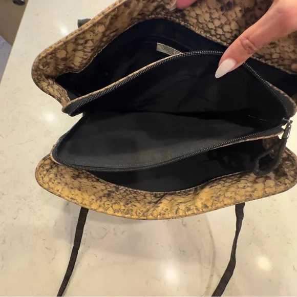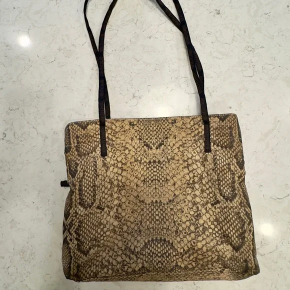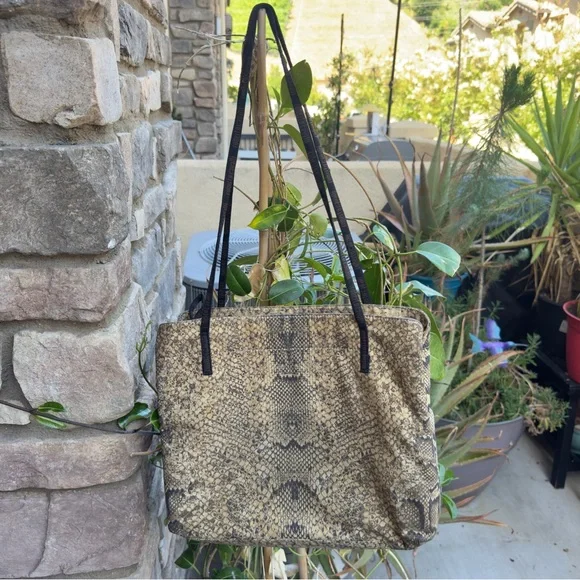Chic and edgy Roberto Cavalli tote in a bold snakeskin print. Spacious, lightweight, and in great condition. A statement piece that elevates any outfit — perfect for everyday glam or a night out!Approx. dimensions: (inches) 12L x 3W x10H#RobertoCavalli #DesignerBag #SnakeskinStyle #Y2KFashion #LuxuryTote #PoshFinds
