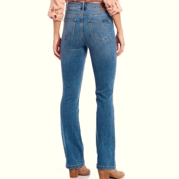 🔥 Unique Find 🔥 Brand New 🔥 NWOT🔥CALVIN KLEIN HIGH RISE DEMI BOOTCUT JEANSSIZE 24WNWOTMADE WITH REPREVE MEASUREMENTS:WAIST-23-26".RISE-13".Inseam-31".. LEG OPENING-12"WAIST HAS STRETCHFrom Calvin Klein Jeans, these jeans feature:High rise waistBelt loops 5 pocket stylingFront button/zip fly closure Approx. 31" inseamCotton/repreve polyester/rayon/spandexREPREVE® fabric uses high-quality, recycled polyester yarns made from recycled plastic bottles
