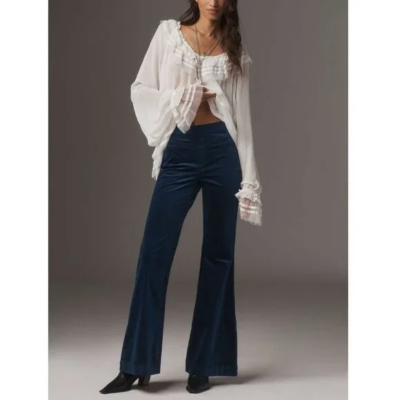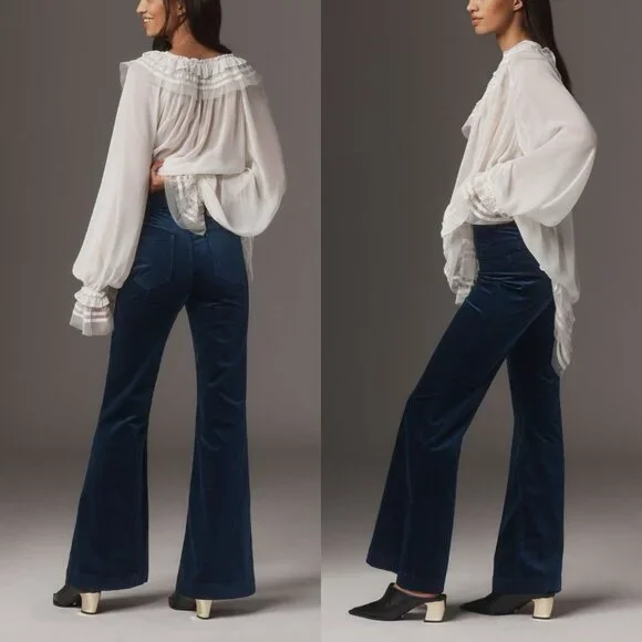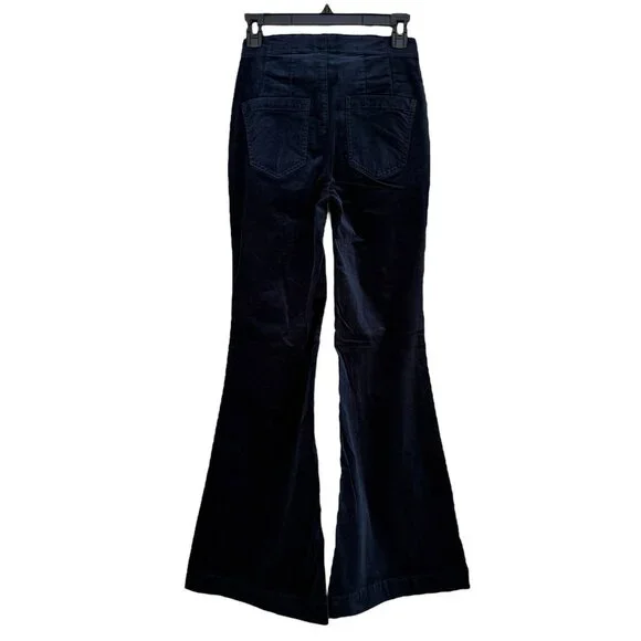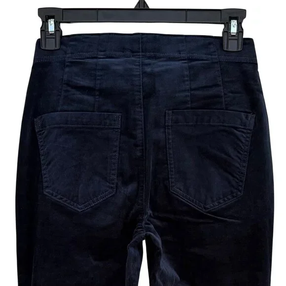 Pilcro Pull-On Mid-Rise Retro Flare Velvet JeansColor: Indigo.New with tag.Denim, decoded: We’re digging denim in every corner of our closet. These pull-on velvet jeans feature a flattering mid-rise and retro flare silhouette.75% cotton, 23% modal, 2% elastaneMid-riseFlare legVelvet fabricationFront faux welt pocketsBack patch pocketsPull-on stylingMachine washImportedApproximate Dimensions laying flat:12.75" waist9.25" rise33" inseam12.75" leg opening