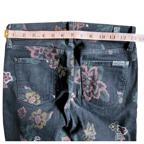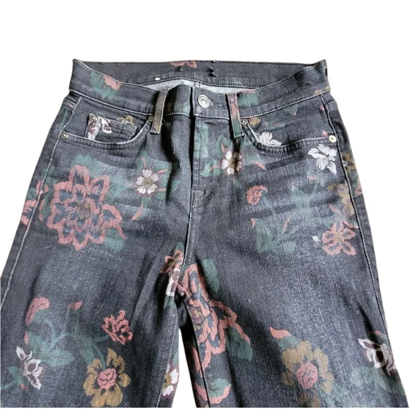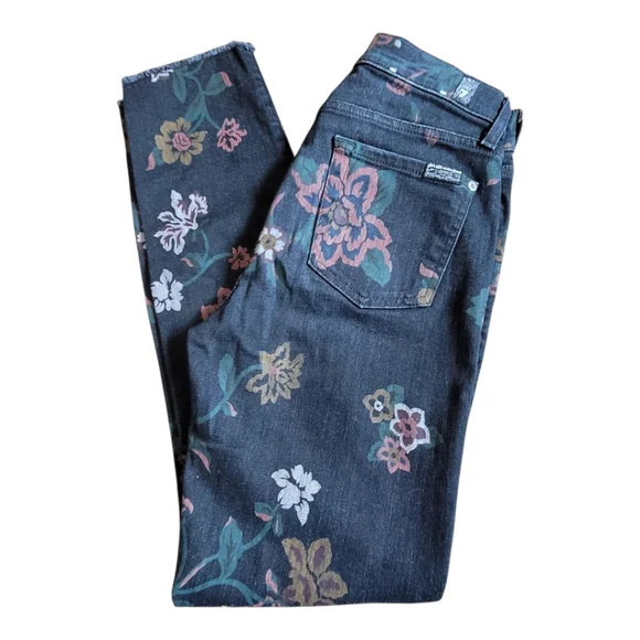 Color: Faded Black Wash with Multicolored Floral PrintSize: 26 (Measurements included in photos, check for fit)Materials: 92% Cotton, 6% Polyester, 2% SpandexFeatures: Rare StyleZipper flyButton closure5 Pocket Classic StyleMid to high-rise waist Black faded washWhiskeringFloral print throughout Light intentional distressing on pockets Skinny FitStraight LegAnkle Length Cropped Released and Frayed Raw HemFun Denim7FAMK Denim *Inside brand tag cut out at the waist (internal tag with materials and size still attached), a minor cut in the top of the waistband (see photos, a discount already applied for minor damage as listed). New to ? Use my code: THEBEACHHAUS to earn a $10 credit for signing up as a buyer, seller, or both.