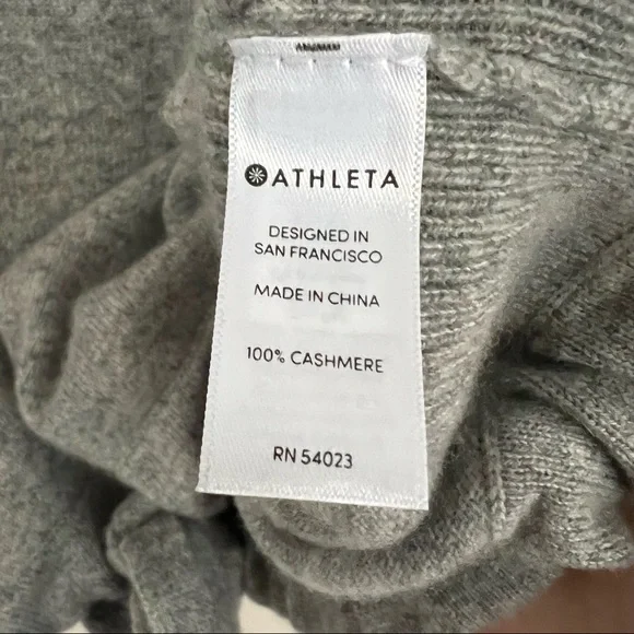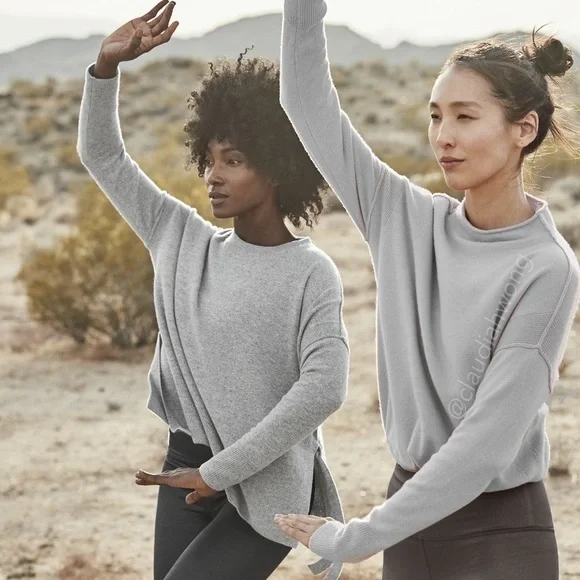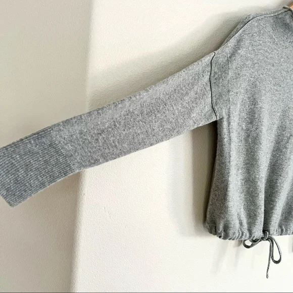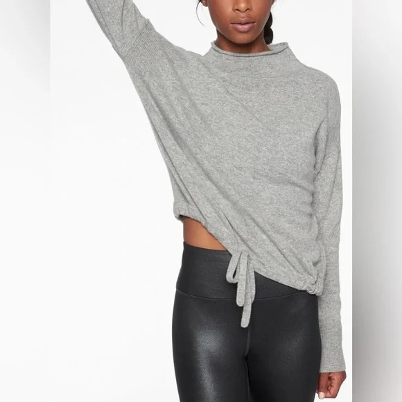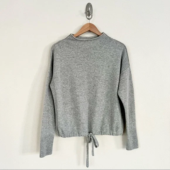 ATHLETA Cashmere Funnel Neck Sweater in Heathered GreyHigh mock neck. Long sleeves. Ribbed panels and cuffs. Exposed seams. Drawstring bottom hem tie for blouson look. Dropped shoulder. MSRP $198. Excellent condition. No notable flaws.~~BUNDLE 2 or more items for further discount!~~Neutral, layering, lightweight, staple, athleisure, minimal, capsule, modular, fall, winter, turtleneck