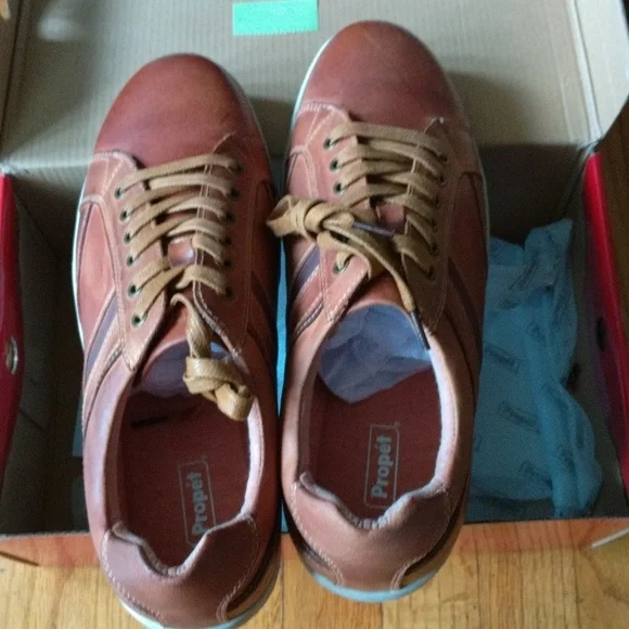 Sporty yet refined, the Propet® Lucas shoe has that perfect go-anywhere look!Brown shoes, men, 9.5 by PropetLow-profile silhouette.Lace-up vamp.Uppers of burnished waxy nubuck leather.Padded collar and tongue.Nylon mesh lining for breathable wear.Cushioned EVA insole for all-day comfort.Durable rubber cupsole with side stitching.