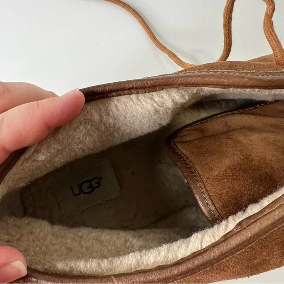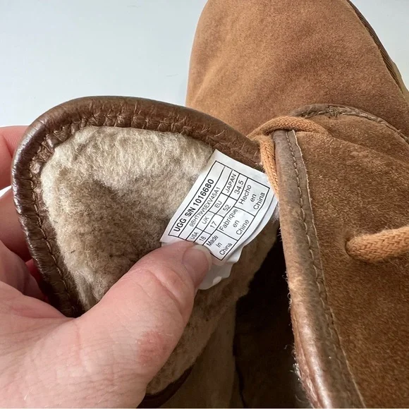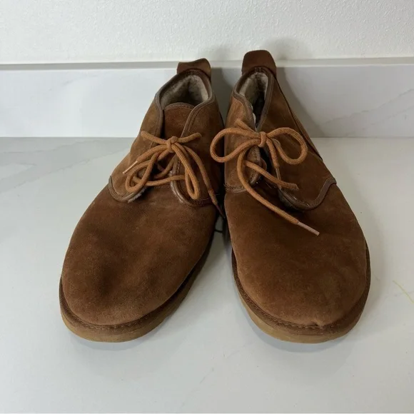 UGG Mens Maksim Suede Chukka Shoes Suede Leather Brown Casual Comfort Size 18Cushioned wool insole for a soft, supportive feel.EVA outsole provides flexibility and ease of movementChukka-style silhouette with a clean, minimalist finishBrand: UGGGender: Men'sMaterial: LeatherCondition: excellent Pre-Owned Condition