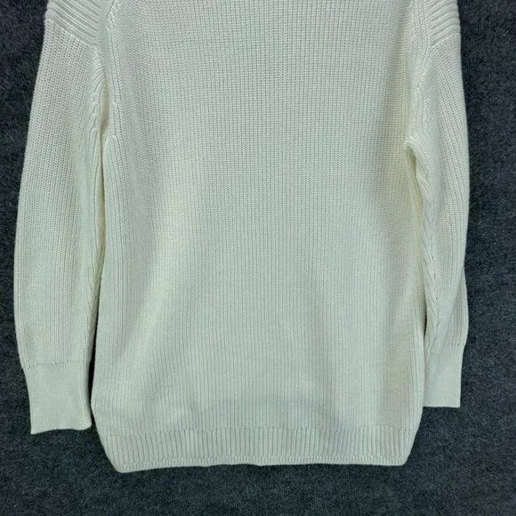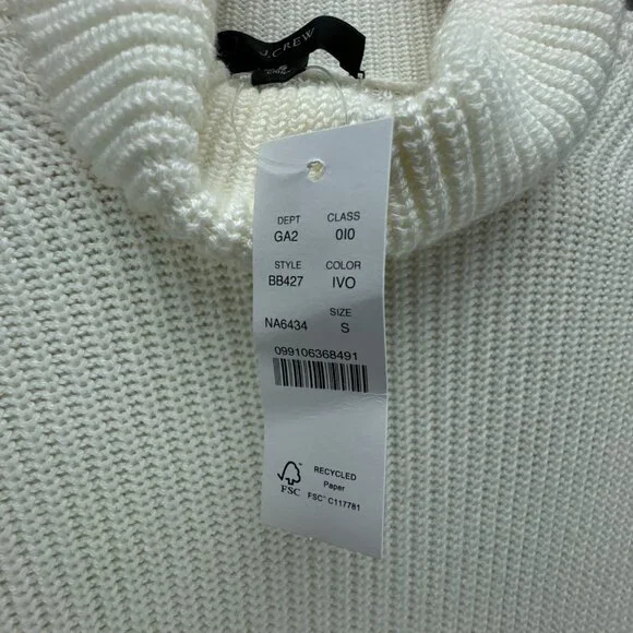 J Crew Sweater Womens Small Pullover Ivory Turtleneck Cotton Cashmere Relaxed85% Cotton, 15% CashmereSize SmallRibbedOversized relaxed fitCozy and softLong lengthNew with tag- J Crew label is loose. Shown in picture. ***Please see pictures for measurements for proper fit.***Shipping- I ship within 2 business days.Questions- Feel free to send me any questions you have.