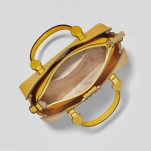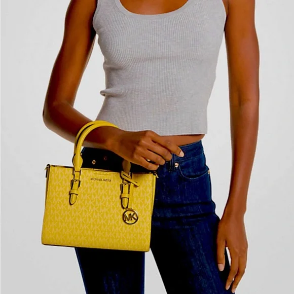 ‼️🆓‼️FREE GIFT WITH PURCHASE‼️🆓‼️ Style: Michael Kors Charlotte 3 in 1 Satchel Crossbody Bag (Golden Yellow) Material: Saffiano Leather Features: Crossbody Strap, Gold Hardware, Removable Zip Pouch, Signature Print3 in 1 - includes a zip removable pouch and can zip pouch can turn into crossbody. Measures: 9" L x 7" H x 3.25 " D