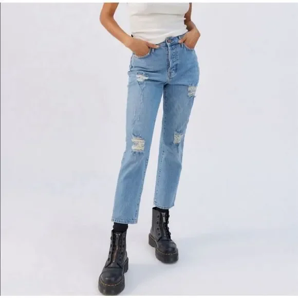 NWT BDG UO High Rise Stretch Slim Straight Leg Distressed JeansNew with tags. UO's BDG Slim Straight jean for a fit that falls between a true straight leg and your favorite skinny jeans. Hugs the body through the high waist and thigh with an ultra-slim stretch leg that hits above the ankle. Complete with 5 pockets and zipper fly.- High rise- Slim leg- Ankle length- Model is 5'9" and wearing size 27- Size up for looser fit