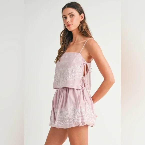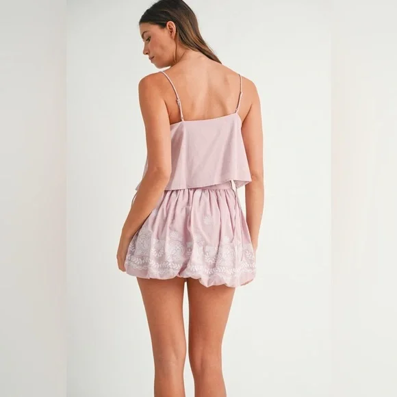 This trendy set features an embroidered crop cami paired with a playful balloon mini skirt. The cami is adorned with intricate embroidery for a stylish touch, while the balloon skirt adds a fun and flirty element to the ensemble. Perfect for a night out or a special event where you want to make a statement with your outfit.Features: Embroidered, Lace Detail, DrawstringNumber of pieces: Two-pieceStretch: Slightly stretchyMaterial composition: SELF: 100% RAYON LINING: 100% RAYONCare instructions: Machine wash cold. Tumble dry low.ImportedModel information: Regular size model-height 5'7", bust 34", waist 26", hip 34", size S, jeans size 3Product measurements:S:Bust 33-35 in, Waist 25-27 in, Hip 35-37 inM:Bust 35-38 in, Waist 27-30 in, Hip 37-40 inL:Bust 38-40 in, Waist 30-32 in, Hip 40-42 in✨🛍BUNDLE AND SAVE! Discount of 30% on of 3 or more🥰. Feel free to reach out with any questions!😍🌟