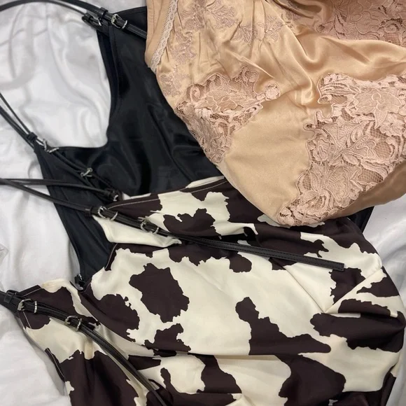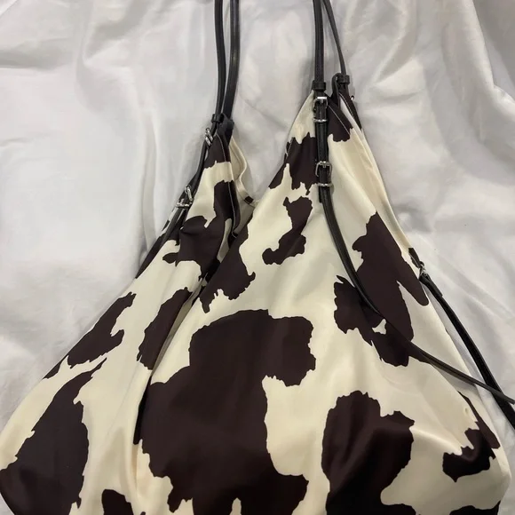 Zara satin trio bags! This combo trio will sure get you on the go always looking classy sophisticated and chic! This collection of satin bags featuring black, brown animal print and pinkish tan color. leather straps for the black and the brown Perfect for any occasion. Beautiful bags! New never worn