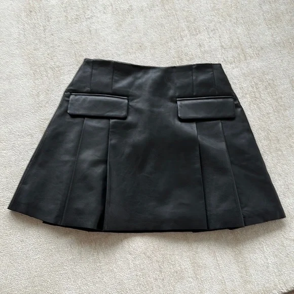 Never worn. Brand new with original tags still attached. 100% lamb leather, soft and supple. Pleated A-line, with two faux pockets in the front and hidden zipper in the back. Size XXS sold out online. The skirt is sexy and classy, unfortunately it does not fit me and I cannot return. Never worn, just tried on once.