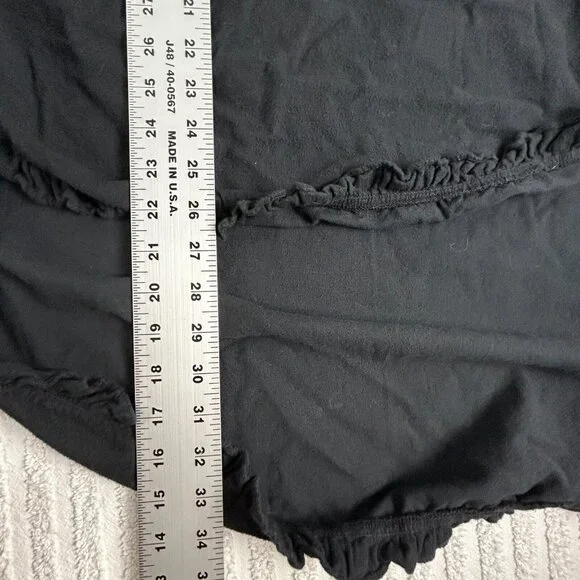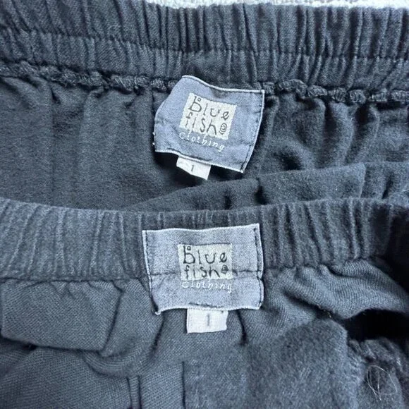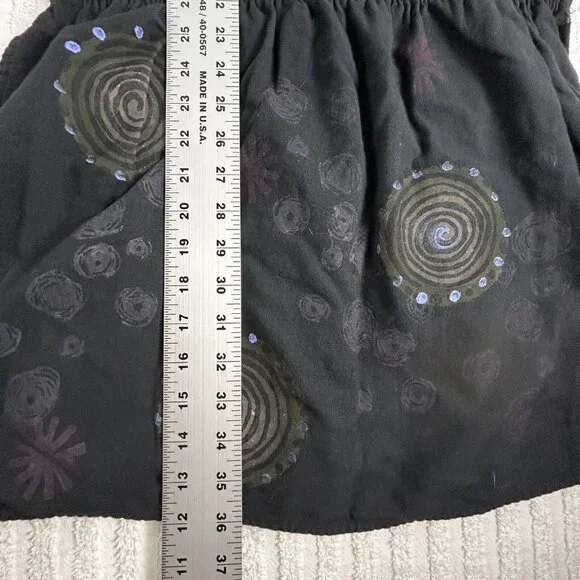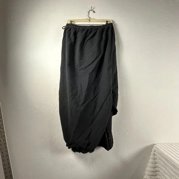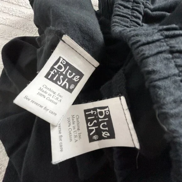 Vintage Blue Fish Women's Maxi Wrap Skirt Black Elastic Waist Cotton Size 1All about Blue Fish! Blue Fish is...artful style, effortless comfort. Made from ethically sourced and produced organic and natural cotton, hemp, silk, linen, lawn, french terry, thermal and more from 1985-2023. Every single piece is printed by hand with care & creativity, one at thestudio. These clothes are made by hand with love, to last. You can create endless possibilities by combining Blue Fish pieces through seasons and years-past, present and future. This skirt is a versatile and chic addition to your wardrobe. The wrap design adds an element of sophistication and allows for an adjustable fit, making it suitable for various body shapes and sizes. The elastic waistband ensures a comfortable and secure fit. This skirt is adorned with delicate hand-painted details, adding a bespoke touch. Delicate ruffle accents adorn the hem of the skirt, adding movement and femininity to the design.Condition: Pre-owned in good condition. Brand: Blue FishTagged Size: 1Color: BlackFabric Content: 100% CottonStyle/Features: Maxi skirt, elastic waist, hand print detail, wrap tieApproximate Measurements:(Laying flat)Waist: 14.5"Hips: 20"Length: 36"SKU: 3F 19SECONDARY SKU: 0040