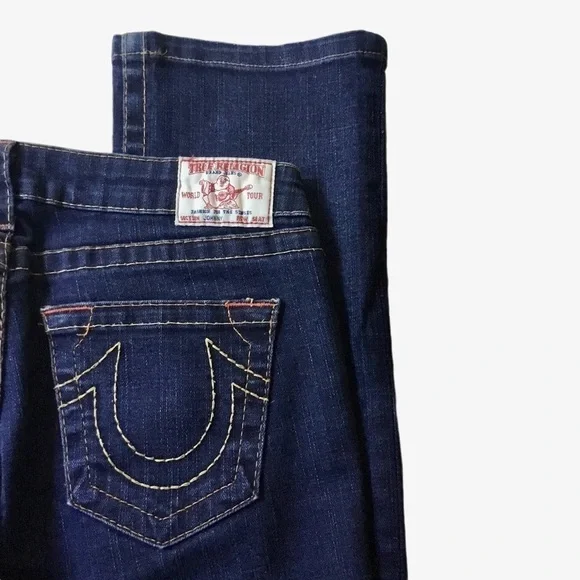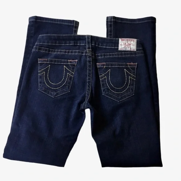 True Religion Johnny Low Rise Straight Leg Y2K JeansExcellent Preowned Condition- Like NewDark Wash Denim with Pops of Yellow and Orange TopstitchingSize: 29Approximate Measurements:Across Top of Waist 16.5”Rise 8”Inseam 31.5”Leg Opening 16.25”5-Pocket StyleZip Fly with Button Closure99% Cotton 1% ElastinTags: Festival, Y2K, Streetwear, Retro, Casual, Denim, Cotton