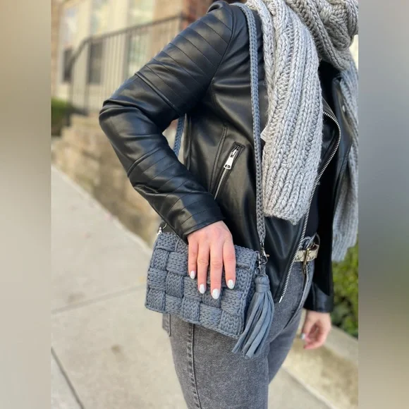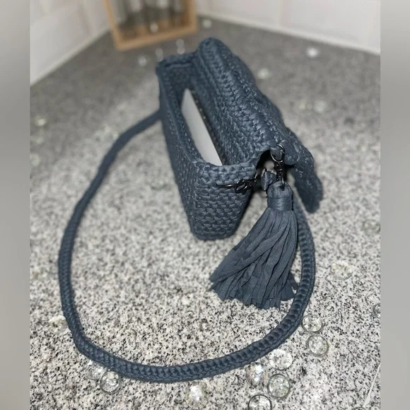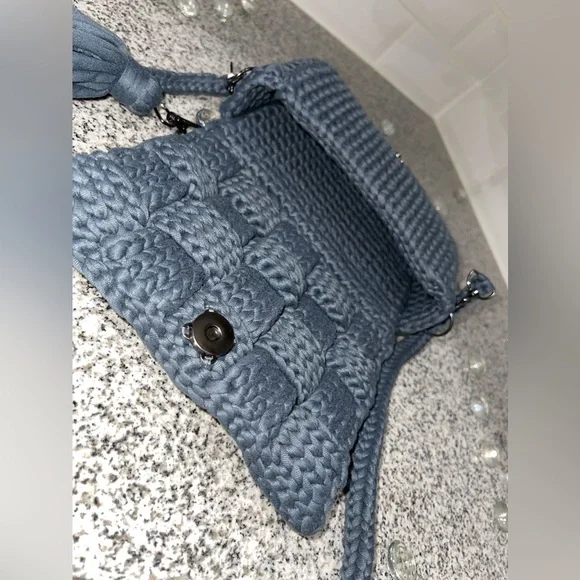 💌Tessie Bag💌This bag is perfect for making any outfit look complete. While this bag is made out of yarn it’s firm and keeps its shape very well because of its pattern and the technique used! Tessie bag can be made in color of your choice as well as the hardware. The shoulder strap can be made out of the yarn or chain. The size of this bag:L-8 in H-5.5 inW-2 in *please note the size maybe slightly bigger than the one listed*💌To become a happy owner of Tessie Bag just send me a message for customization💌•I have 2 more styles if interested 🛍🎉•handmade by me•will be shipped a anywhere from 4-8 days after is ordered unless I tell otherwise( depends how busy I am) •smoke free home •let me know if you have any questions 🎉🛍