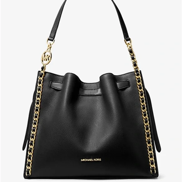 An everyday staple, our Mina bag will never go out of style. Made with a spacious interior and shiny chain details for a touch of glam, it’s the perfect bag to throw over your shoulder for an easy transition from day to night.DETAILS• Shoulder bag • Polyurethane blend • 60% polyurethane/20% cotton/20% polyester • Trim 1: 52% polyurethane/48% polyester • Trim 2: 60% polyurethane/20% cotton/20% polyester • Gold tone hardware • 13.5"W X 11.25"H X 5.5"D • Interior details: back and front slip pockets • Lining: 100% polyester • Snap fastening • Imported