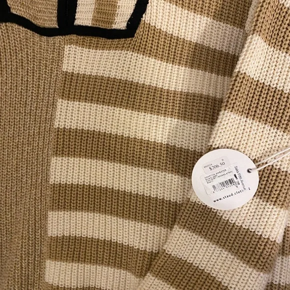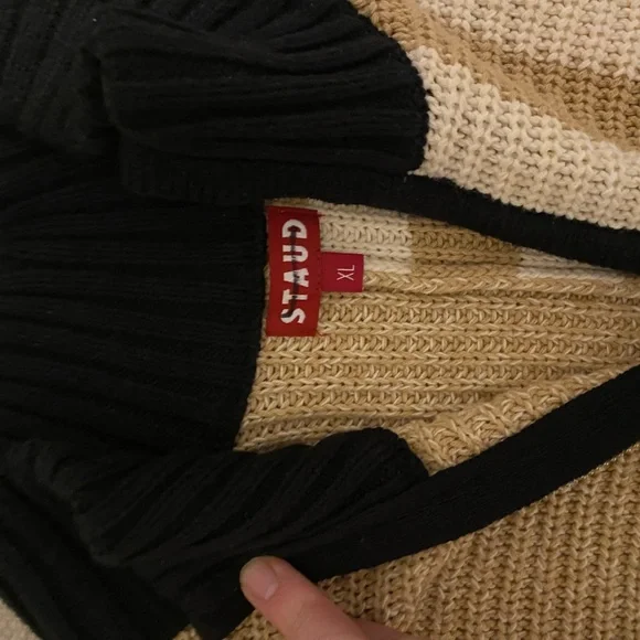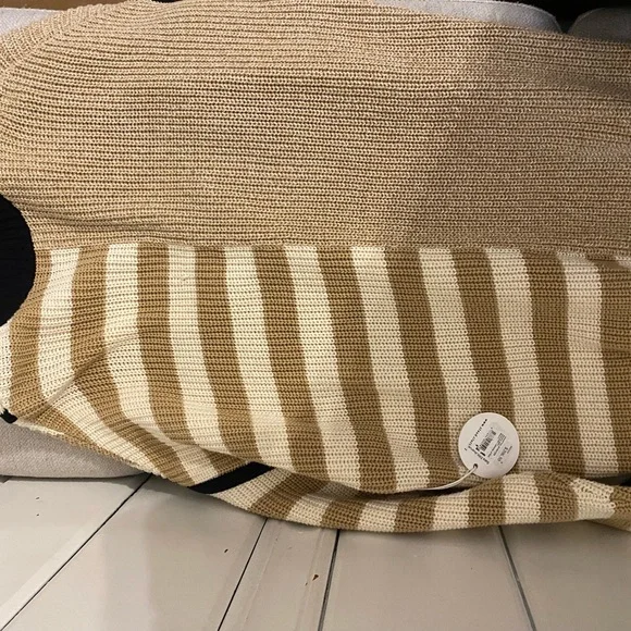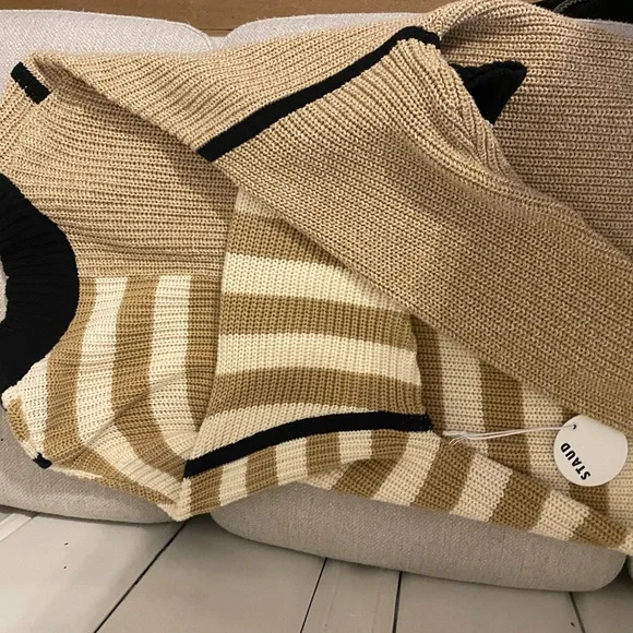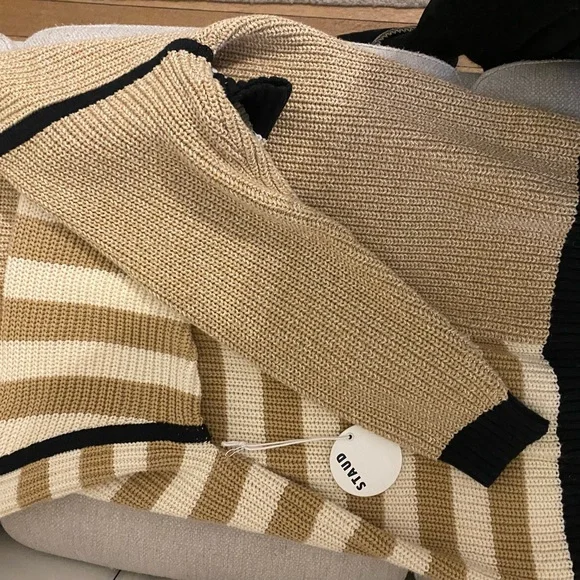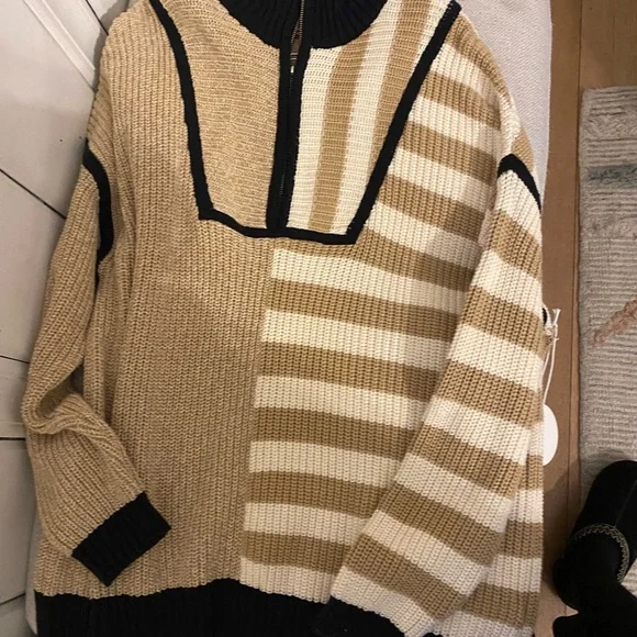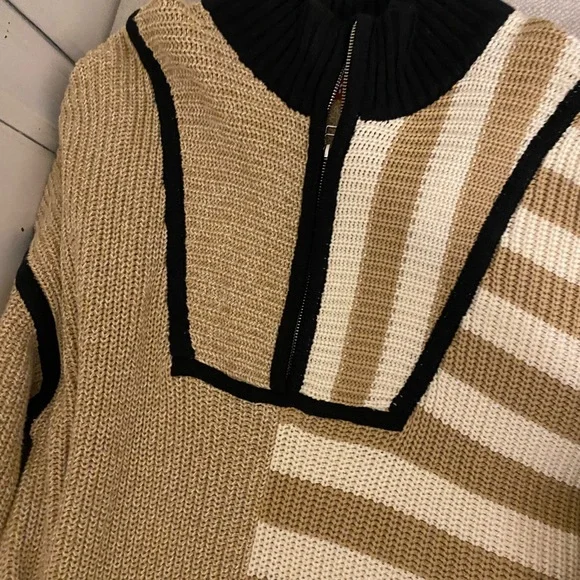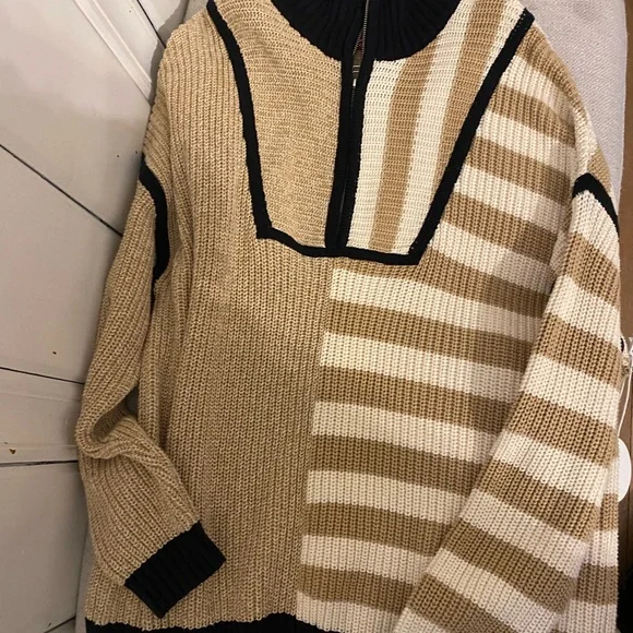 Staud Women's Tan and Cream Half Zipper Sweater Size XL.