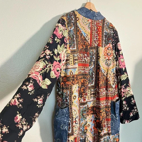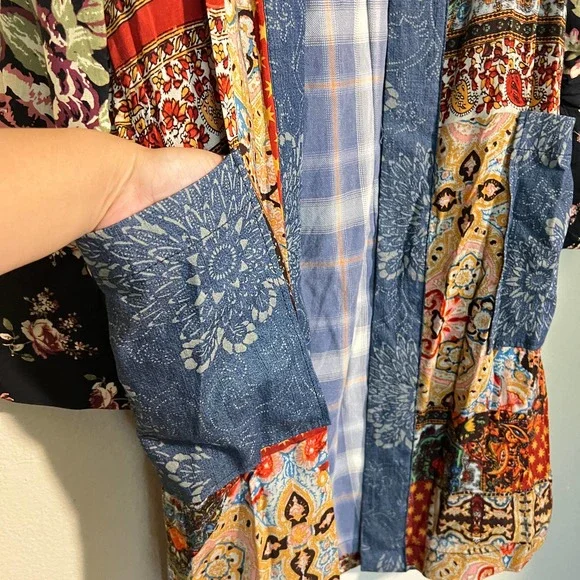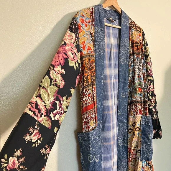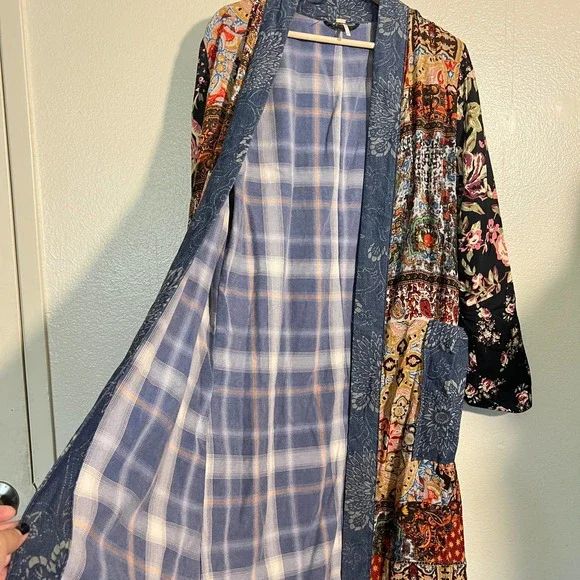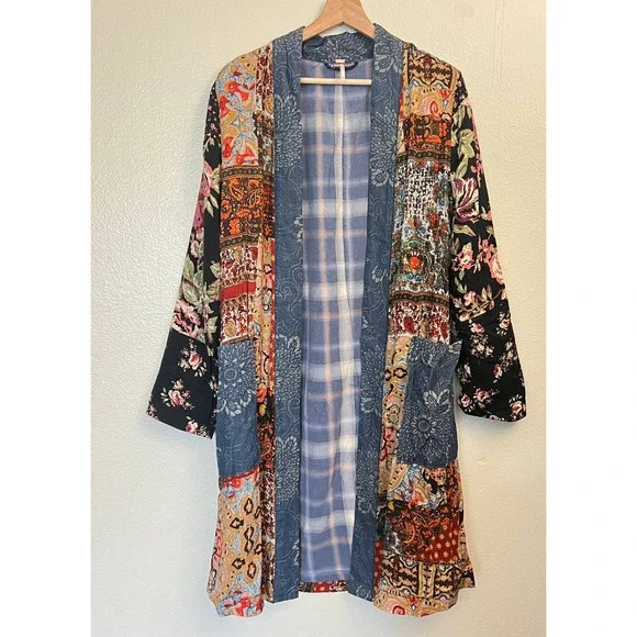 *Crossposted*Feel free to send an offer ♡Free People Songbird Patchwork Kimono Duster cardigan Jacket. Size small. Has pockets.Condition: excellent. Material: see photo of tag.Product color may slightly vary due to photographic lighting sources and/or monitor settings.Smoke-free, pet-friendly home.1-3 days ship time.