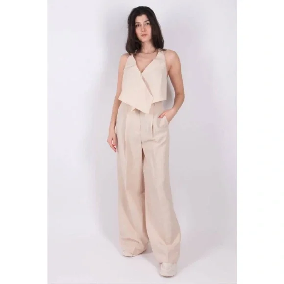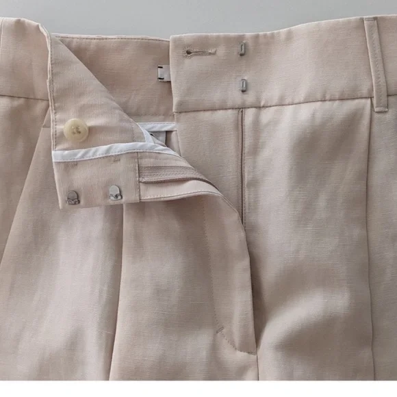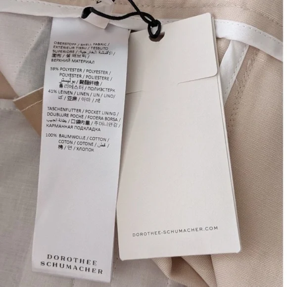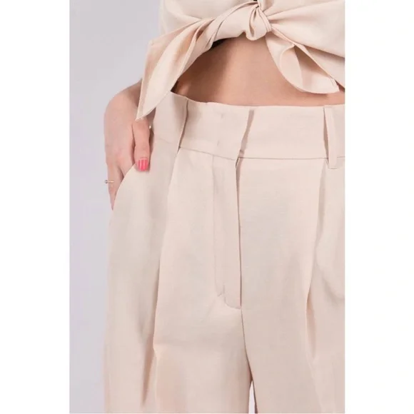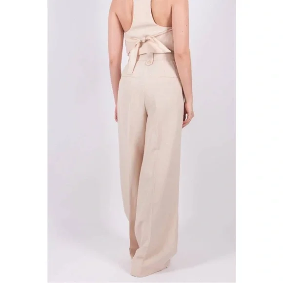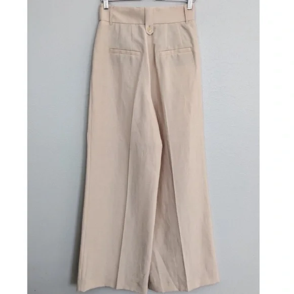 Summer (suiting) on your mind? Channel the vibe with the breezy wide leg linen blend pants. Double up with the matching tank and blazer and you're off!high-waisted flared trousersBeige linen-blend high-waisted flared trousers fromDOROTHEE SCHUMACHER featuring two rear welt pockets, two side inset pockets, belt loops, high waist, hook and zip fly fastening, flared and long length.Composition:Polyester 59%, Linen/Flax 41%Washing instructionsDry Clean OnlyMeasurements:Waist: 14 inches lying flatLength; 46.5 inchesInseam: 33 inchesRise: 15 inchesLeg Opening: 13 inches