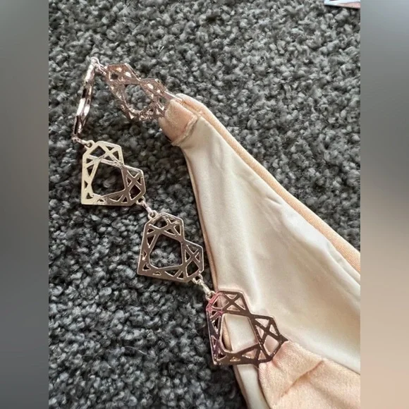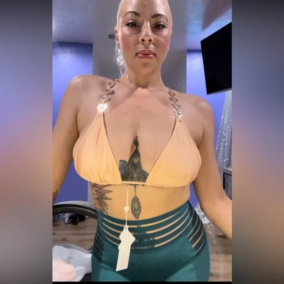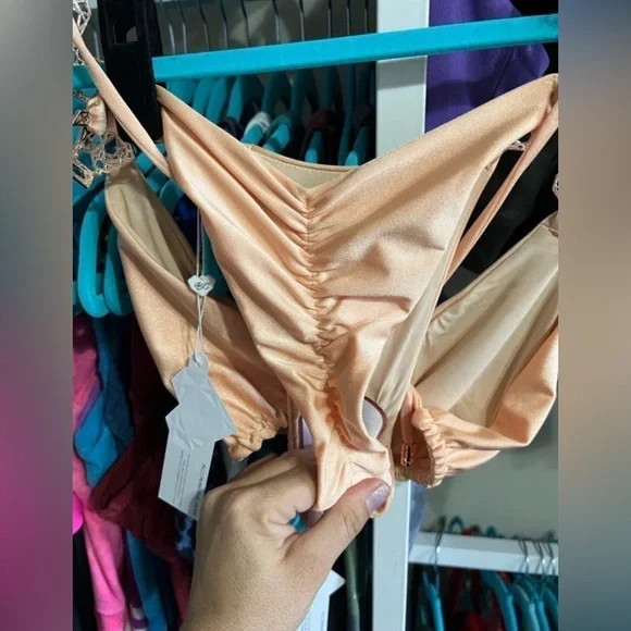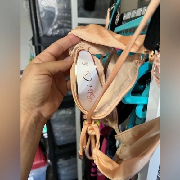 NWT never worn Bikini Crush Swimwear 2 pc Queen of Hearts logo bikini in light peach shimmer. Gorgeous shimmery bikini with metal BC logo straps. Top will fit 36D-DD, bottom TTS. Top XL -$70Bottom S $70Both $125Retail $225In light ofnew fee schedule please know that I WILL NOT BE DROPPING MY PRICES OR GIVING BETTER OFFERS TO MAKE UP FOR THE FEE YOU AS A BUYER WILL NOW PAY. I DO NOT AGREE WITH MERC OR POSH DIRECTING THEIR FEES ON BUYERS!! PLEASE SEND A MESSAGE AND LET POSH KNOW THAT WE DO NOT WANT TO PAY THEIR FEES! This is a new trend that companies who are RICH are passing fees into the buyer while saying it’s for the sellers benefit but if people want to send low offers or want you to drop your price or worse, not buy at all because they now have to pay fees that posh is being greedy over, it will NOT benefit sellers! After merc did this my sales went WAY down and the offers people sent were A JOKE because the fee to buy is so high!! THIS IS WRONG! We are struggling as a society with CRAZY HIGH INFLATION and these billion dollar companies (POSH IS WORTH 1.2 BILLION!!) keep mining our wallets to pay shareholders EVEN MORE! PLEASE LET POSH KNOW IF YOU AGREE WITH ME AND YOU ARE FED UP WITH COMPANIES TAKING ADVANTAGE OF US!! New to ? Use code: Mistifeyed for $10 off your first order!