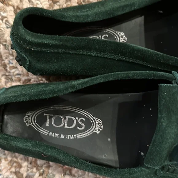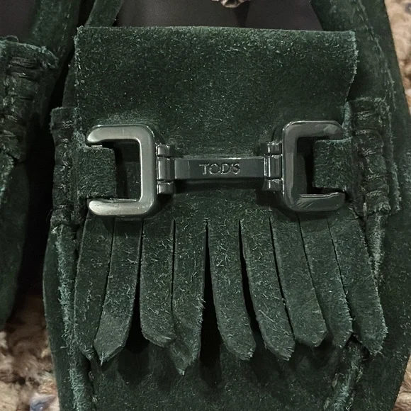 Ready to offer comfort and style, this pair of loafers by Tod's will make a fantastic addition to your shoe collection. They've been crafted from suede and styled with logo detailing and fringes on the vamps. They come equipped with comfortable insoles. They have the signature bumps on the soles.Size 37.5