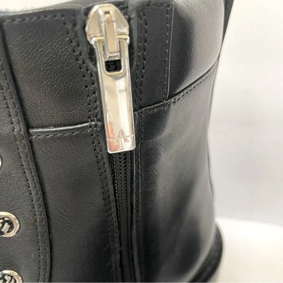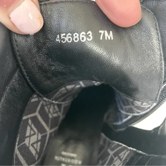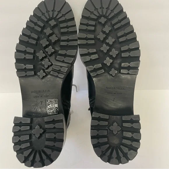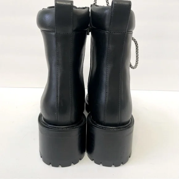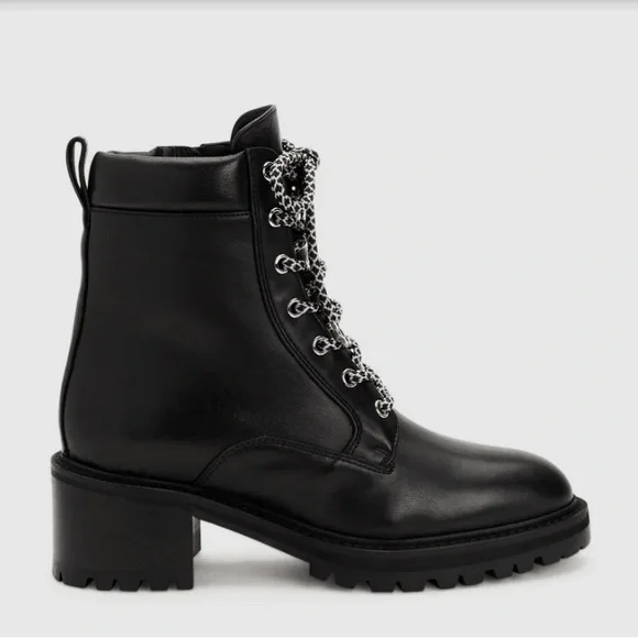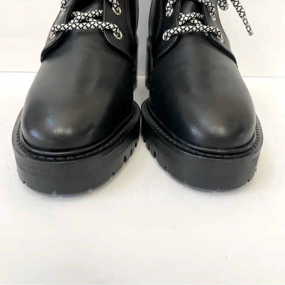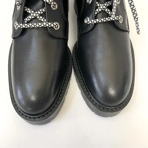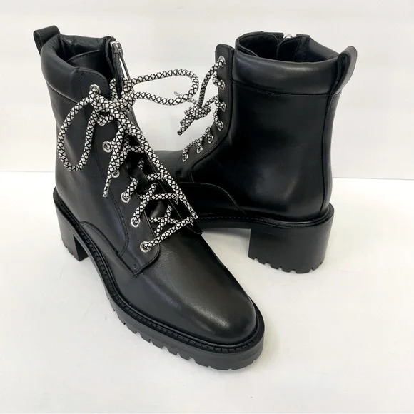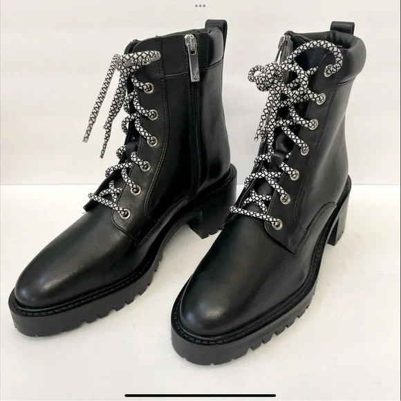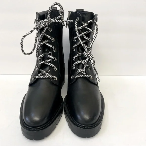 Printed tubular laces stand out on the Sabine round-toe ankle boot, crafted in weatherproof Nappa leather and finished with sturdy lug soles. Pairs perfectly with jeans and leggings or dresses and skirts. Made in Italy.LeatherLace upInside zipperFabric liningLeather sock lining2” (50MM) rubber heel1.4" platform height6" shaft height11" shaft circumferenceRound toeRubber Lug soleWeatherproofMade in ItalyTrue to sizeNWOBSold out online Size 7Smoke/pet free home
