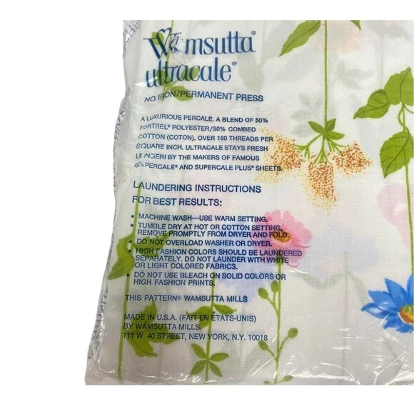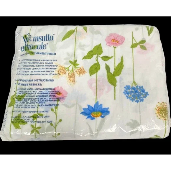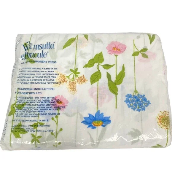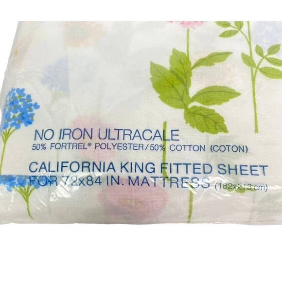 * Wamsutta Ultracale California King Fitted Floral Flat Bed Sheet for 72x84" Mattress* New old stock. Vintage. Made in USA. 50% Fortrel Polyester/50% cotton.* Measures approximately 182x213cm.* Please see the photos for a detailed description of the item(s). Photos are part of the item description. We do our best to give the best true description of the items we are listing. Be advised that the actual color of the item may vary due to different color variance of each device.* We do bundles/combine shipping. Message us to see if we can save more on shipping cost.* Thank you for supporting our small business. Check out our store for more items for sale.