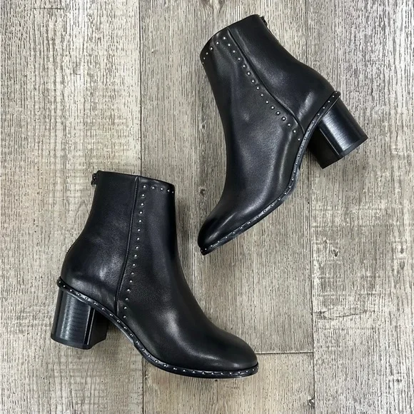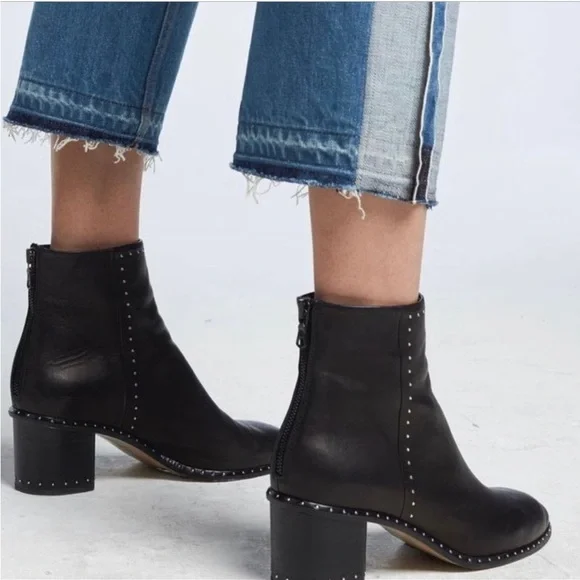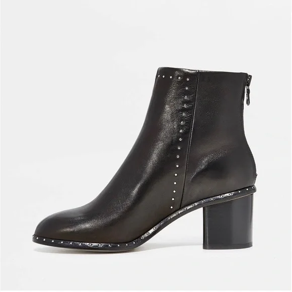 Studded elegance. Rag & Bone's Willow Stud Boot takes its place as a seasonal stable thanks to luxe leather and standout mini stud details. High fashion and comfort meet thanks to a block heel and back zipper closure..Mini silver tone stud accents. Back zip closure. Heel measures approx 2.25" H.Size 6Note that sole of right boot has residue from where sticker was. Original box and dust cover includedLeather is unbelievably supple