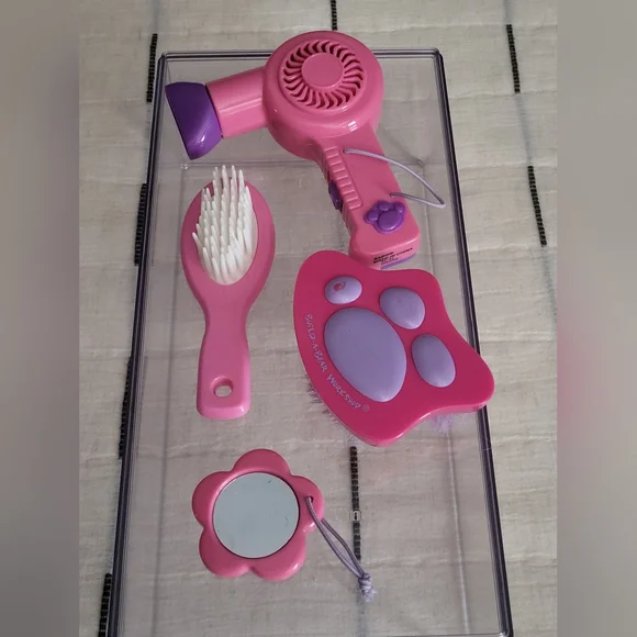 This adorable pink spa day set for your Build-A-Bear includes essential accessories for a fun pretend spa day. The set features a soft robe and pretend spa day tools, perfect for making bath and spa day time enjoyable with your Build-A-Bear! Deteails / Included 1 pink Build-A-Bear robe fits all standard bears. 1 Spa Day kit includes bigger brush, blow drier, smaller brush, and small mirror. In excellent pre-loved condition. Ready to have a new home. See images for more specifics and condition. From a pet and smoke-free home. ...Build-A-Bear