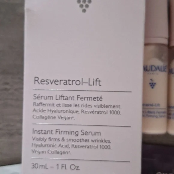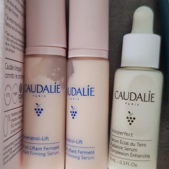 1 full size (1 ounce) and 2 samples resveratrol lift. 1 sample Vinoperfect, one sample Vinergetic C+, one sample Vinoperfect brightening eye cream, 8 samples of Vinopure, and 5 samples Premier Cru. A serum that visibly lifts, firms, and smooths wrinkles with Caudalie’s patented alternative to retinol.Skin Type: Normal and DrySkincare Concerns: Fine Lines and Wrinkles, Dryness, and Loss of Firmness and ElasticityFormulation: SerumHighlighted Ingredients:- Resveratrol: A powerful vine antioxidant that visibly firms and reduces the look of wrinkles.- Hyaluronic Acid: Two molecular sizes of hyaluronic acid hydrate and leave skin feeling soft.- Vegan Collagen 1: Visibly firms and smooths facial contours.