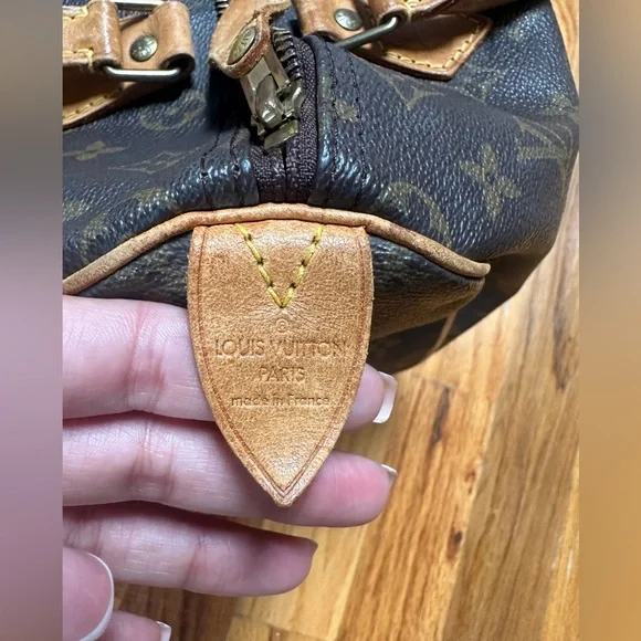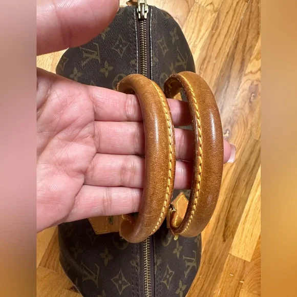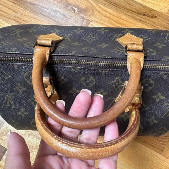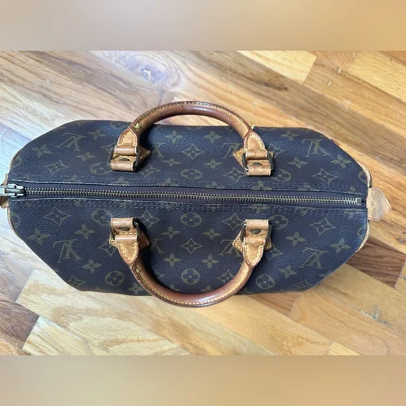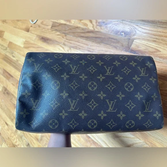 Authentic LV speedy 30. Pre-Loved Vintage Speedy 30, in Great Condition. Zipper works well, with LV pull zipper in great condition. No cracks on interior, Date Code posted in photo. Pipping in Good condition with some peeling. Creasing on exterior, darkening, wear, scuffs and watermarks on handles with light scratches on hardware. Please view photos as is, Vintage piece.Inside very clean. No Lock & Key. Posh authenticated in my LV bundle. Anything over $500 will go to Posh for Authentication.