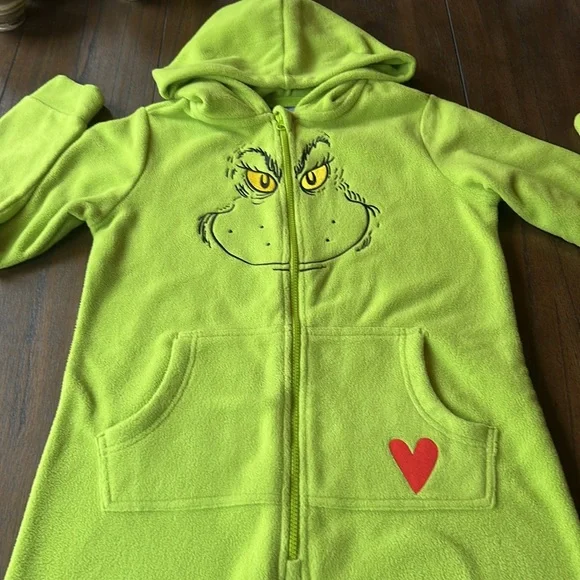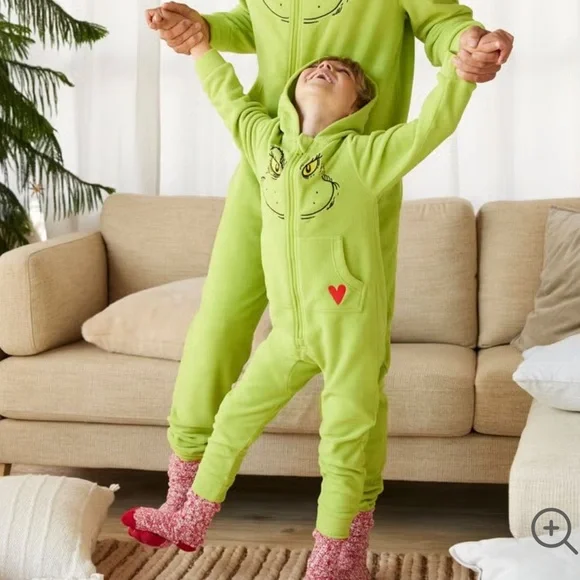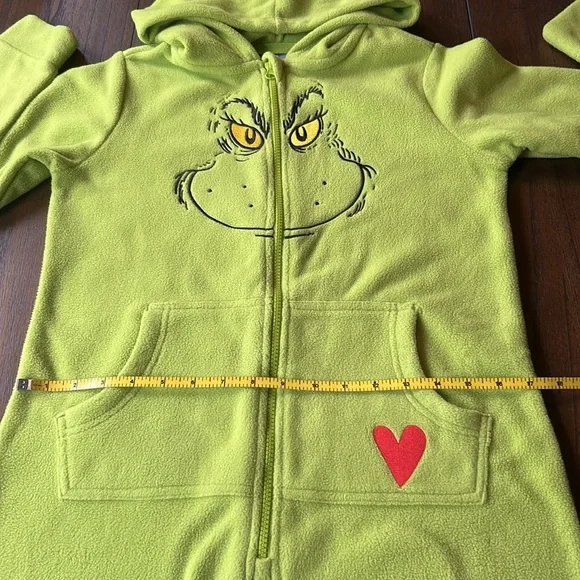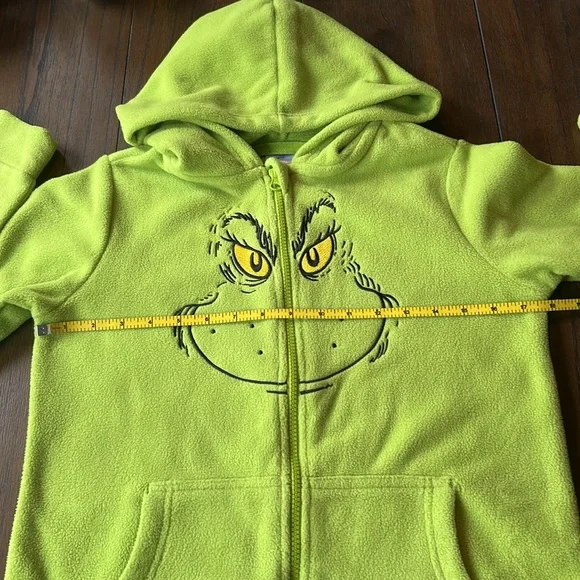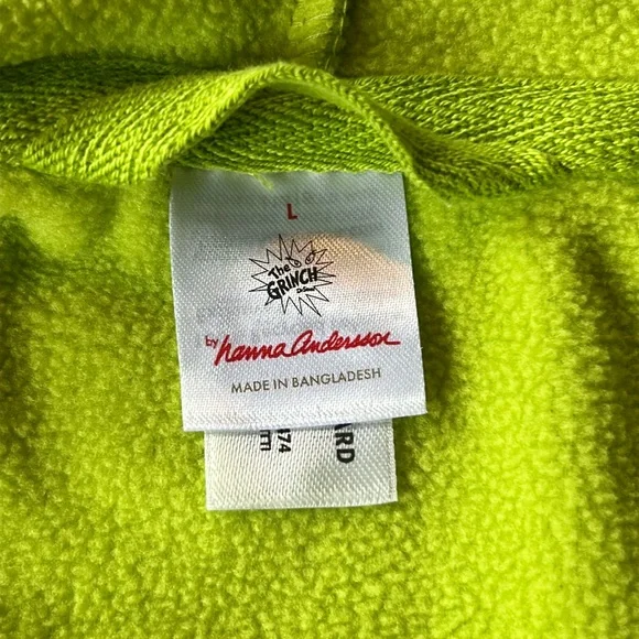 Hanna Andersson Kids Dr. Seuss Grinch Costume Fleece Jumpsuit. The supersoft Grinch jumpsuit is holiday-ready for every adventure, from movie nights to pretend play!Soft and sustainable microfleeceExclusive 3-D Grinch artworkOEKO-TEX® STANDARD 100 certified safe from hundreds of harsh chemicalsDETAILS100% recycled polyester microfleeceRibbed cuffsKangaroo pocketZip frontLocker loopOEKO-TEX® STANDARD 100 | 23.HUS.50474 HOHENSTEIN HTTI | Tested for Harmful Substances | www.oeko-tex.com/standard100Imported™ & © 2024 Dr. Seuss Enterprises, L.P. All Rights Reserved.Pit to pit approximately 17 1/2 inches At waist flat approximately 17 inches Inseam approximately 25 1/2 inches In EXCELLENT—like NEW—condition! Still has quality control sticker on tag as pictured. Kids size Large