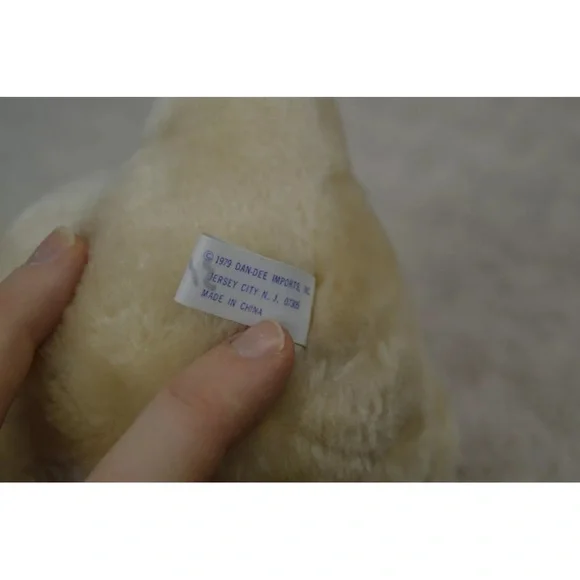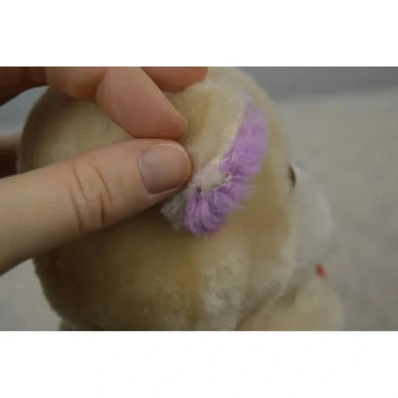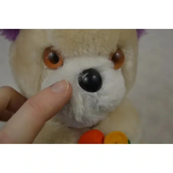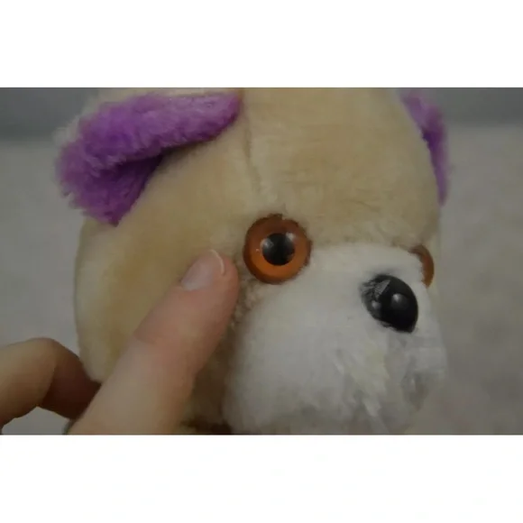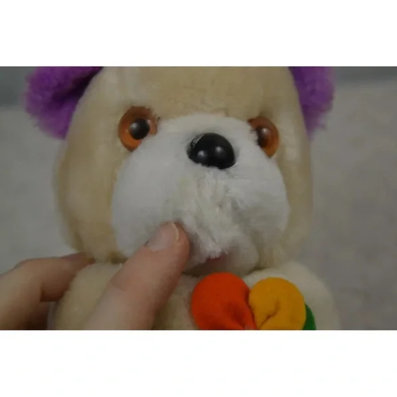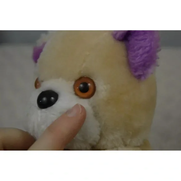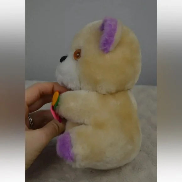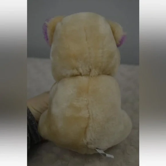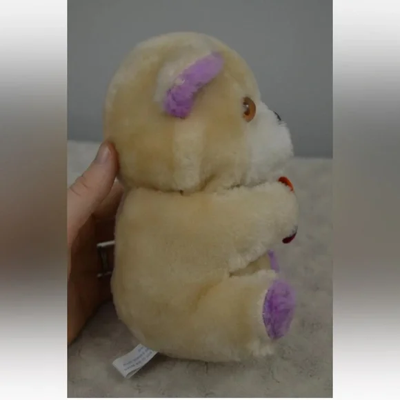 Vintage Dan Dee Teddy Bear Plush Stuffed Animal 1979 Tan Purple FlowerApprox. 7" tallCondition - Pre-loved. **FLAWS** Some discoloration on white part of face. Nose is chipped & scuffed. Eyes are scuffed. One ear has a small hole along seam. Faint numbers written on back of tag. See all pictures. Smoke free home.A31