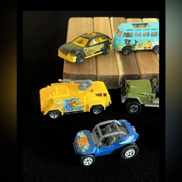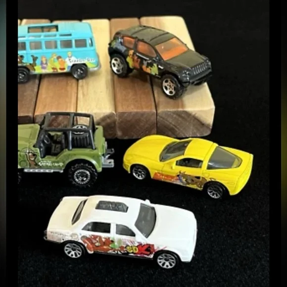 Matchbox Die CastScooby Doo VehiclesLot of 8Very good condition. All wheels turn freely. Only minimal scuffing. Well cared for and in nice shape.1. 1998 Teal Volkswagon Transporter2. 1983 Green 1983 Safari Camp 4X4 Jeep3. 2003 Yellow Chevrolet Corvette4. 2002 White Taxi Cab5. 2003 Black and Yellow City Police Car6. 2003 Yellow Airport Fire Tanker7. 2007 Blue Baja Bandit Buggy8. 2003 Black Jeep CompassExcellent lot of Scooby Doo Die Cast Matchbox vehicles! Great collectibles!