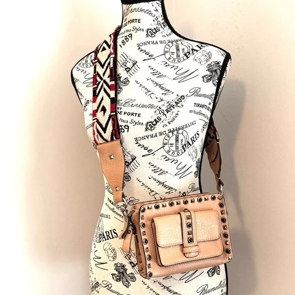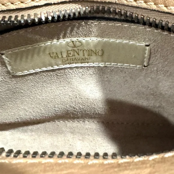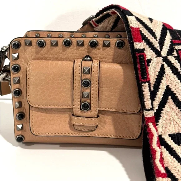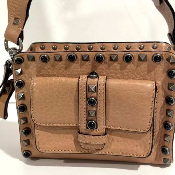 Valentino Garavani Guitar Rockstud Camera BagThis is a limited edition Rockstud Camera bag from Valentino Garavani. The textured adjustable strap has a geometric pattern that adds edginess to the look. The additional front pocket adds extra carry space. Fabulous item! 7” W5” H2” DEUCused several times