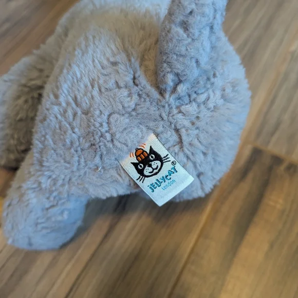 Good condition Gently Used Jellycat London Huggady gray dog. Jellycat stuffed animal toy. Location 42